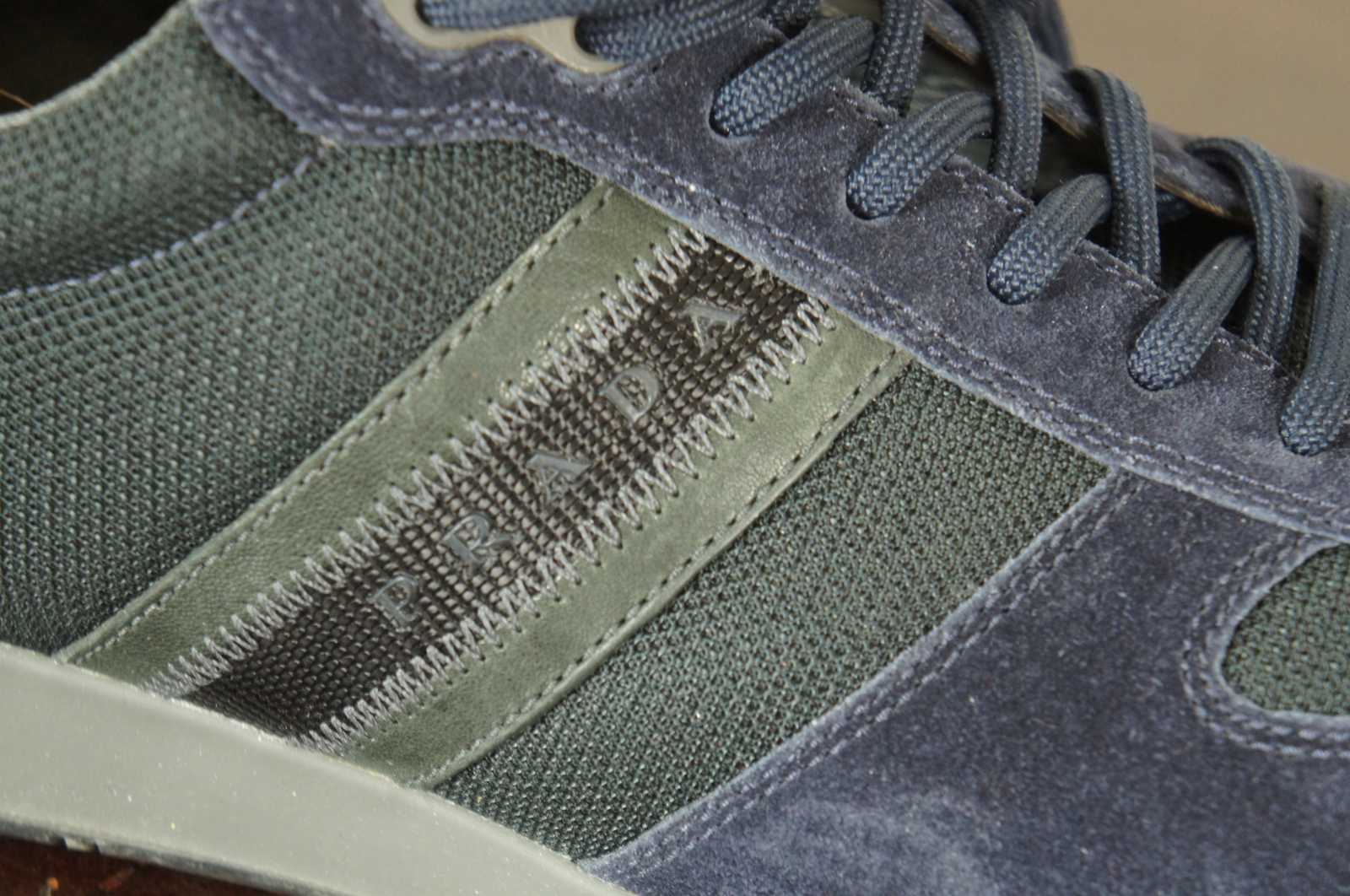 Prada mens blue/ardesia (slate) scamosciato (suede) lace up sneakers or tennis shoes with original box.