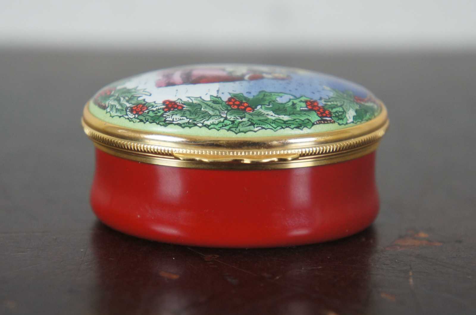 Gump’s Victorian Christmas scene limoges trinket box by Halcyon Days Enamels