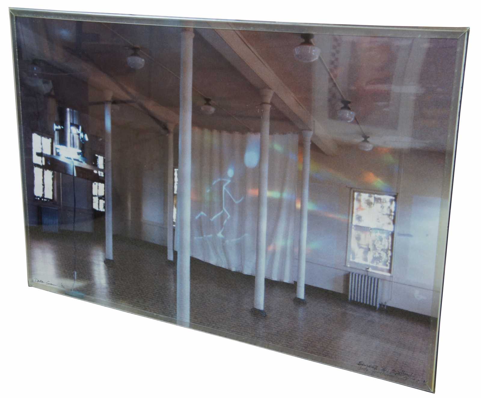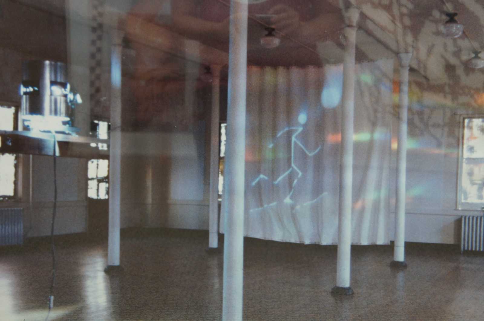 EQuinoz '90-2000 a ten year project began at the Headlands Center for the Art that collected messages about what the future might hold. This dawn to dusk event began when the sun turned on a solar switch that controlled the light sculpture projecting an animation that cycled throughout the month. The environment was filled with rainbow colors of light from diffraction gratings on the large windows as the sun moved across the sky. The light sculpture suspended on redwood projected a revised lcarus myth. International Messages were received by fax, mail, video and performances in response to a call for entries asking what wants, hopes, fears and wishes were held for the future century. Storytellers, dancers, musicians and poets performed to celebrate the last vernal equinox of the 20th century.