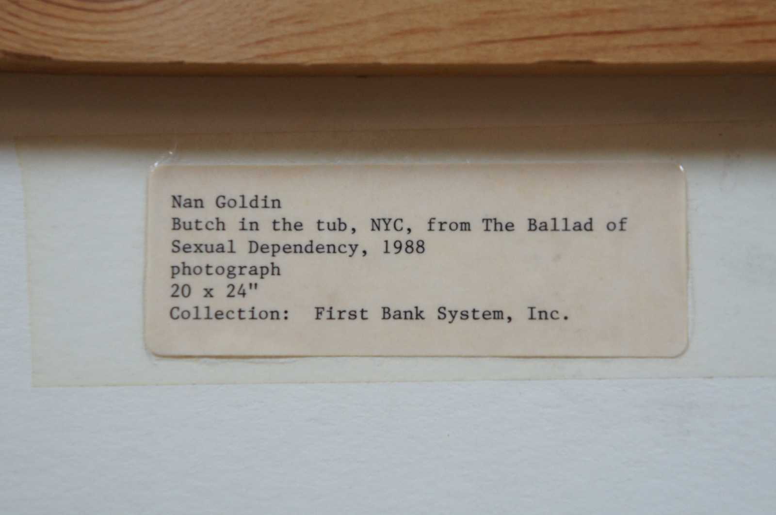 Nan Goldin's images of her friends: drag queens, drug addicts, lovers and family -- are portraits that, create a document a generation. Goldin once said that her work ""derives from the snapshot. It is the form of photography that most closely stands for love.""