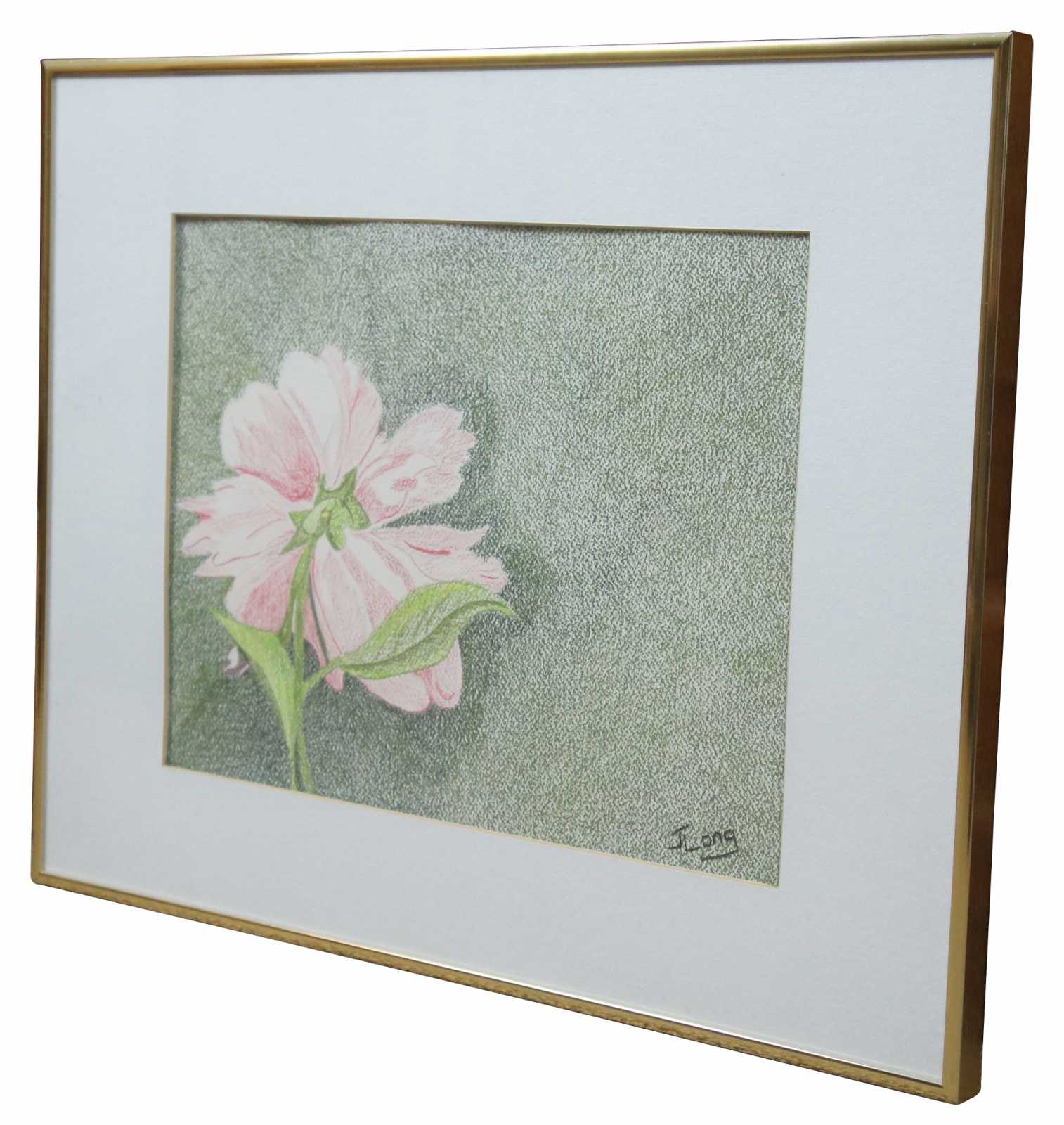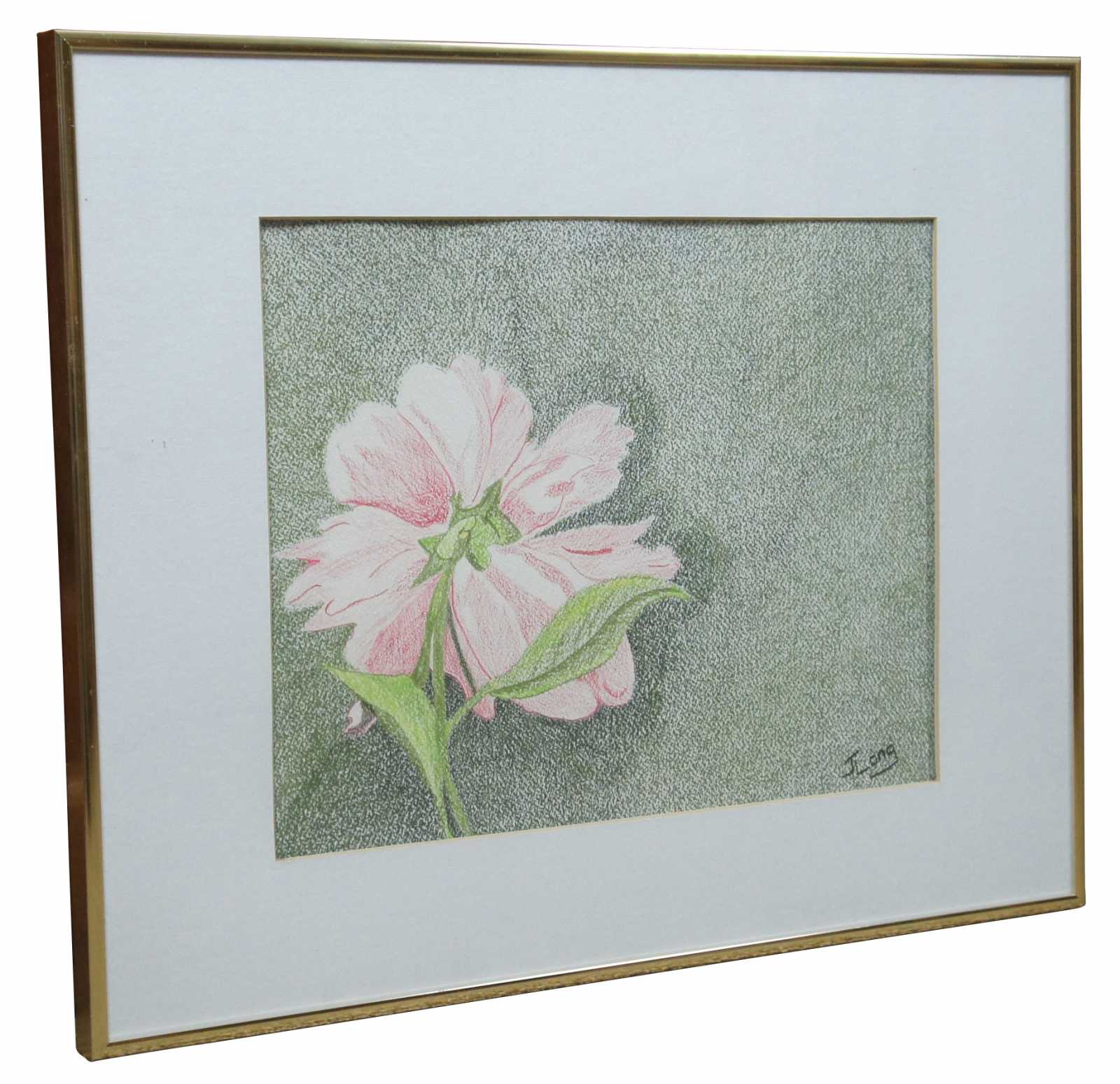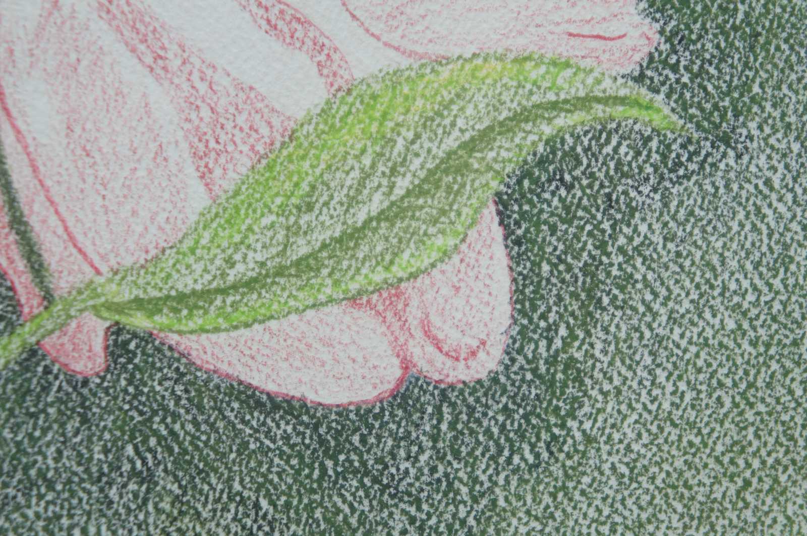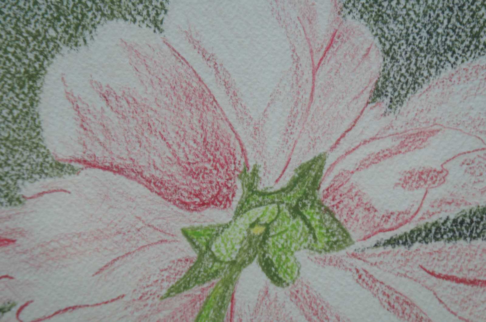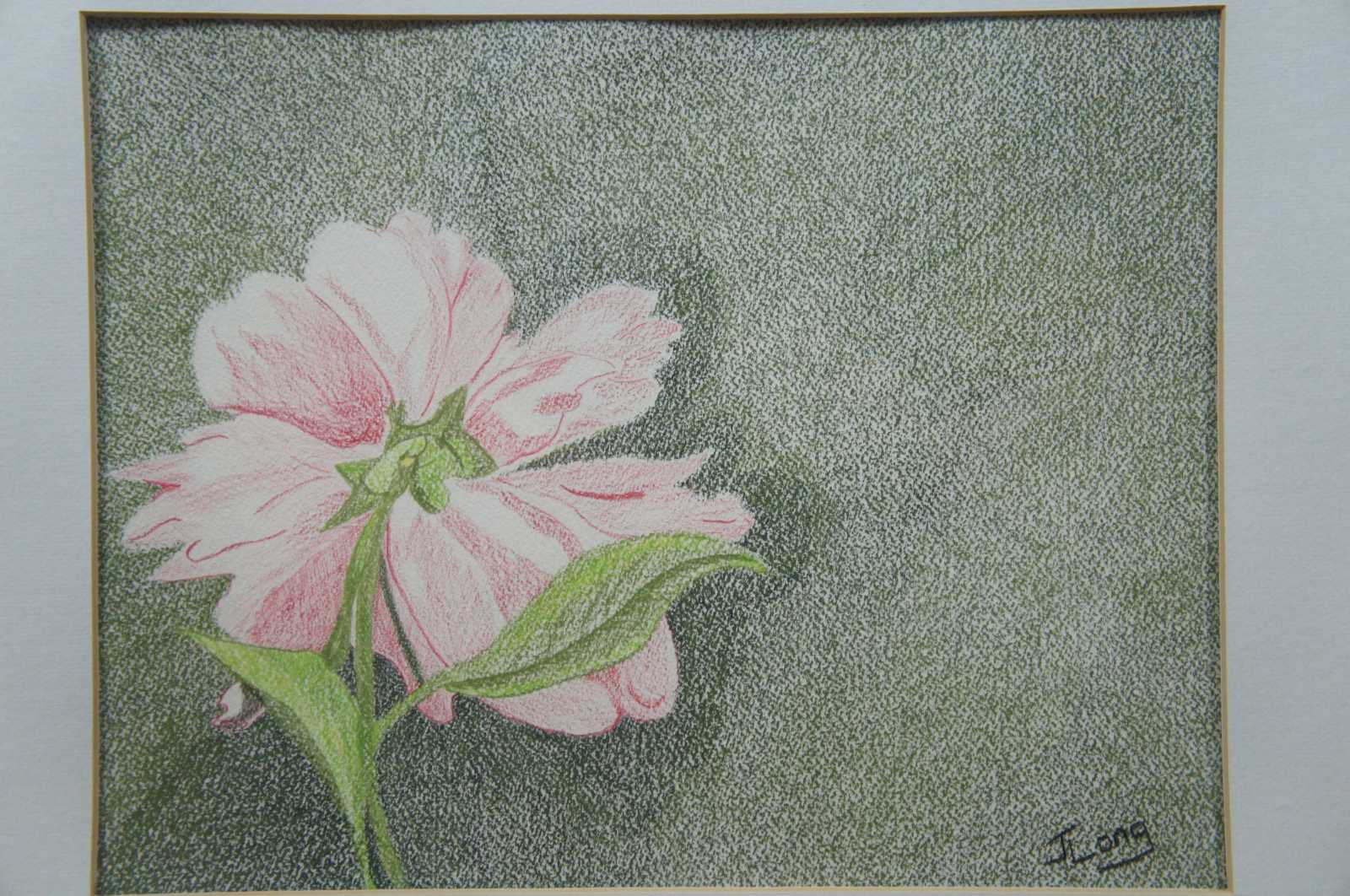 Colored pencil drawing of a pink flower by Jane Long; first place winner at the Darke County, Ohio Fair in 1994.