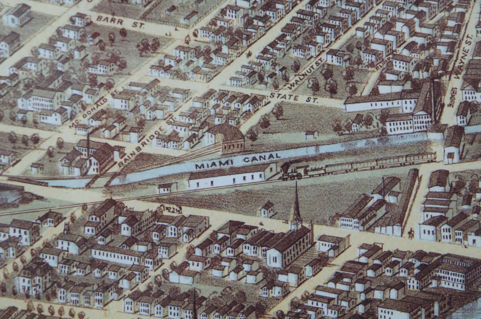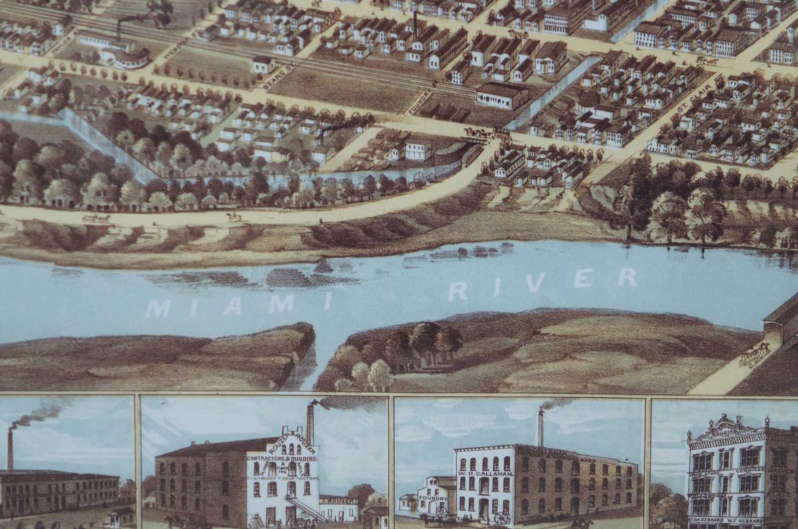 Re-print of Merchants Lithographing Co Chicago's map of Dayton, Ohio, 1870.