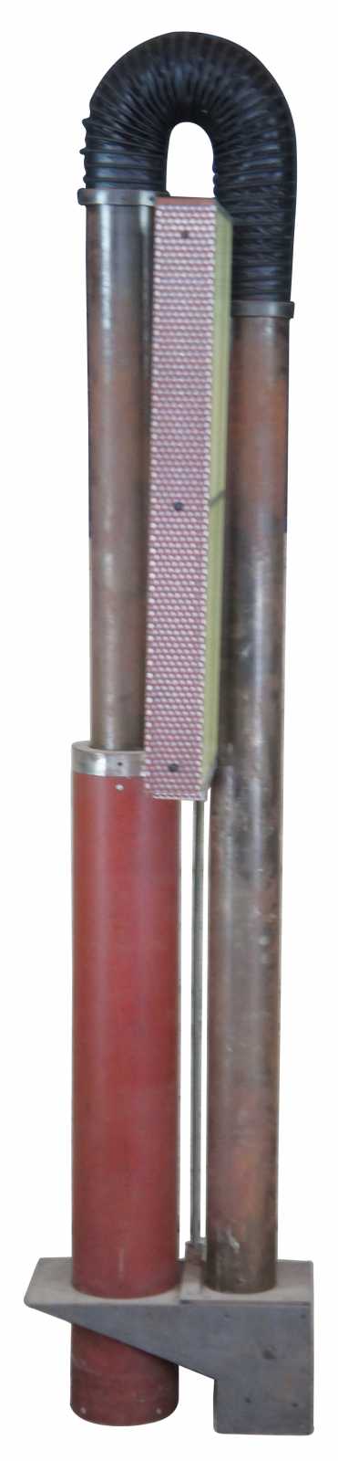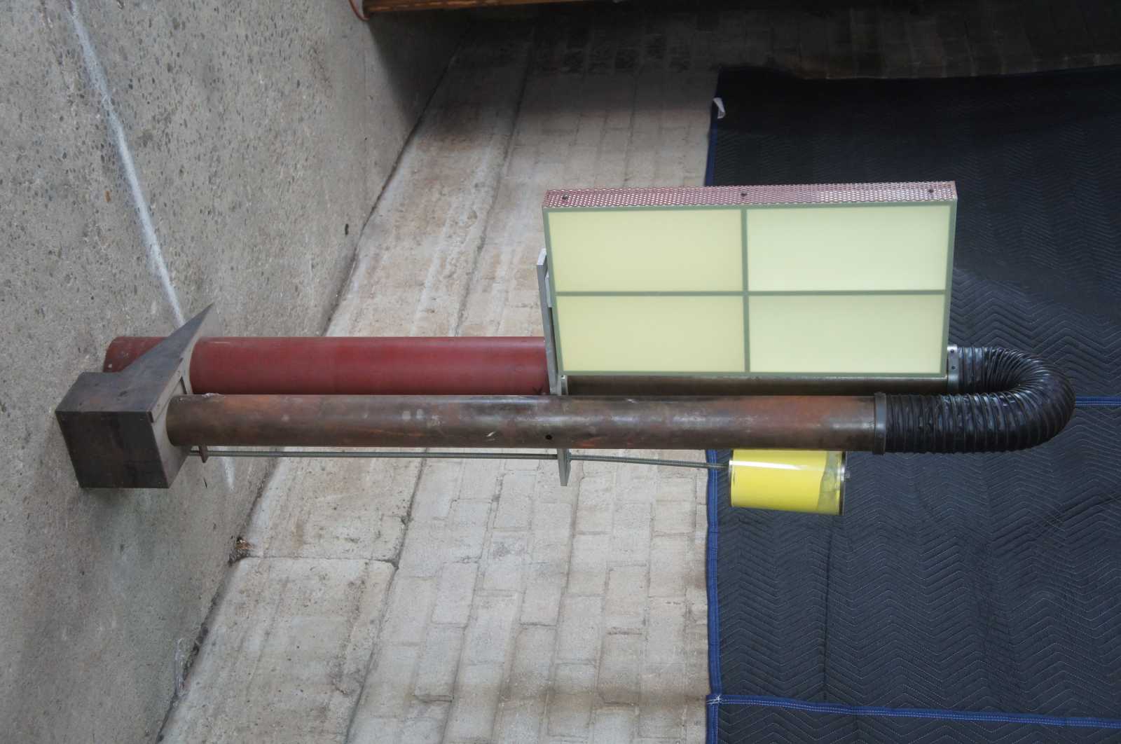 Don Harvey’s artwork explores the tensions between opposites: sculpture and painting, rural and urban, human and animal, the untouched environment and man’s intervention, the divisions between nations. Harvey grew up in rural Iowa and makes his home these days in urban Cleveland; his father was a successful inventor with a machine shop—facts which may or may not offer some light on the artis’s frequent tendency, in his early work, to juxtapose the agricultural and industrialized worlds. Employing elements of collage, Harvey has used things like real industrial fluids to represent lake water and manipulated digital photographs on metal to represent the industrial and natural environment.