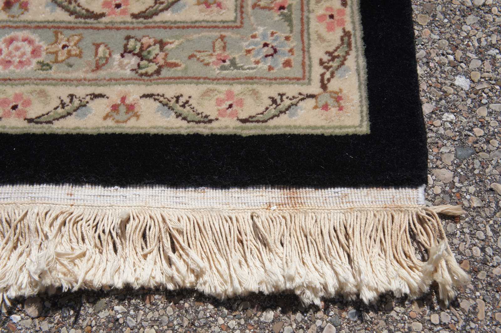 Missing fringe, some staining, wear commensurate with use in a dining room, see pictures.