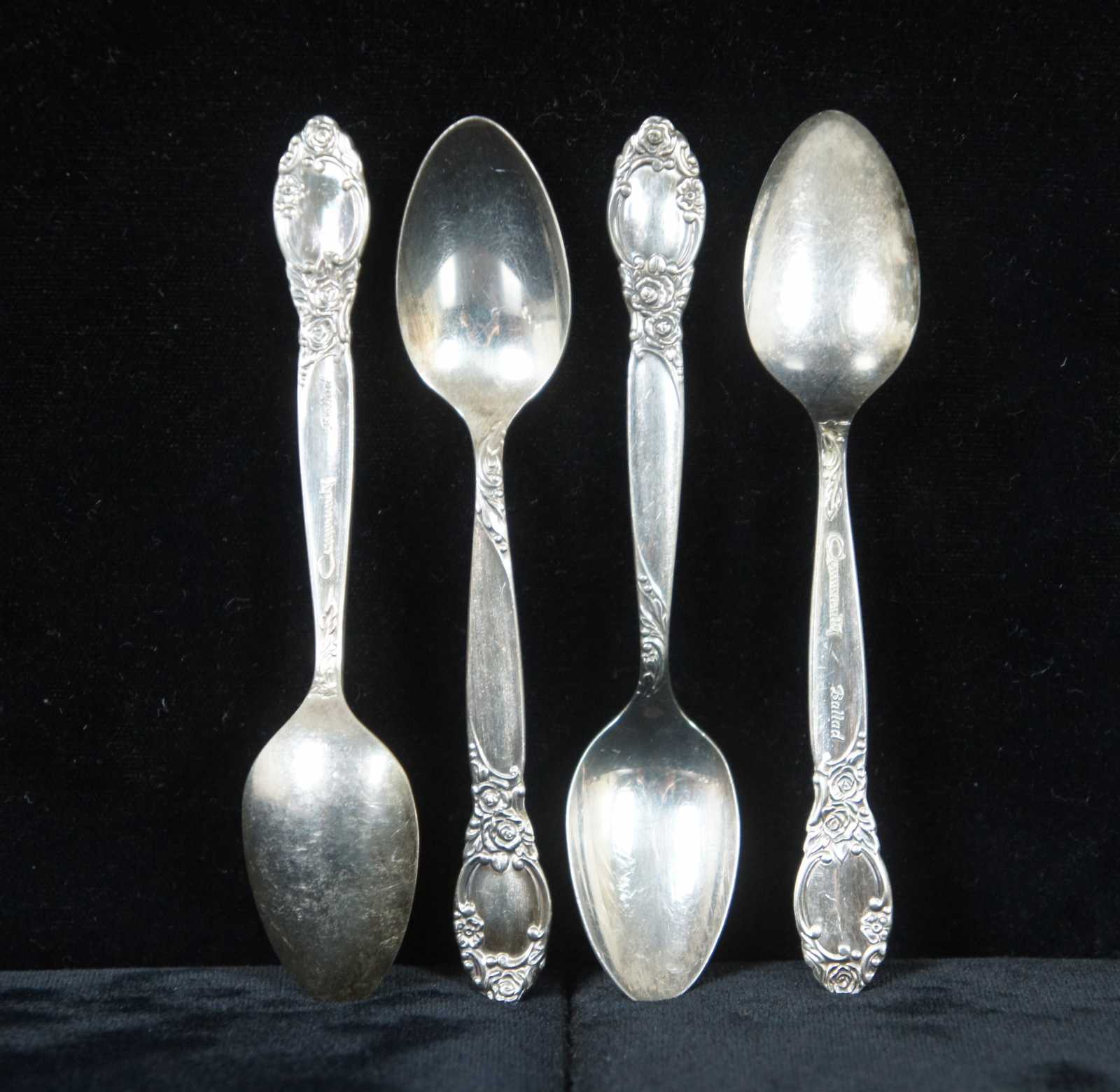 12 Iced Tea Spoons - 7.5” x 1.125” / 6 Butter Knives - 6.5” x 0.625” / 6 Dessert Forks - 6.125” x 0.75” / 6 Tea Spoons - 5.25” x 1.125” / 4 Coffee Spoons - 4.375” x 0.875” / Sugar Spoon - 5.75” x 1.375” / Tea Bag Spoon - 4.5” x 1.625” (Length x Width)