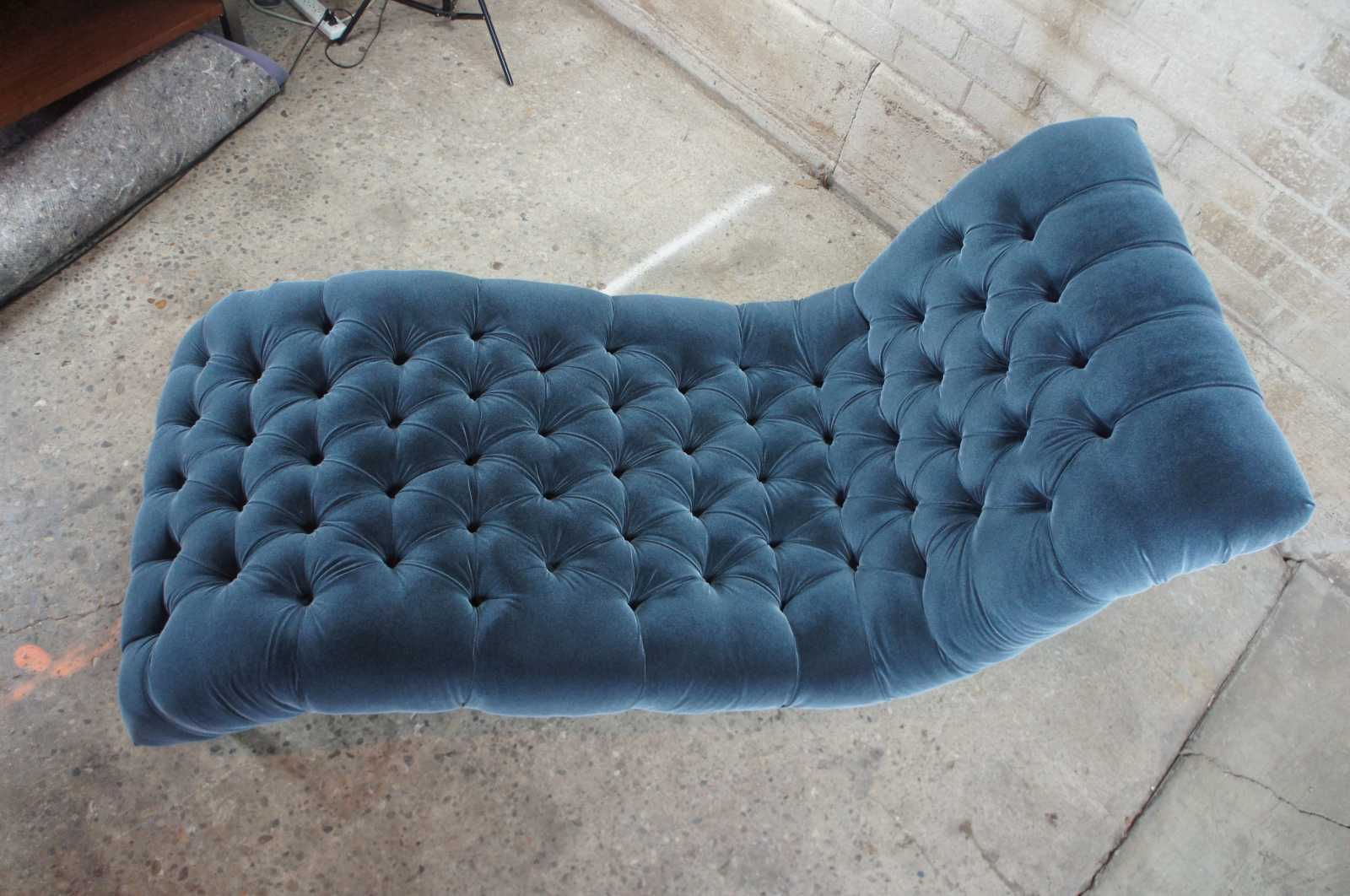 Constructed with soft foam, harwood frame and soft velvet fabric, the antique-inspired Audrey Chaise by Arhaus invites you to surrender into the lap of luxury. Elegant curves are punctuated with dozens of hand-applied tufts and graceful pleating to capture the look of an old English piece.