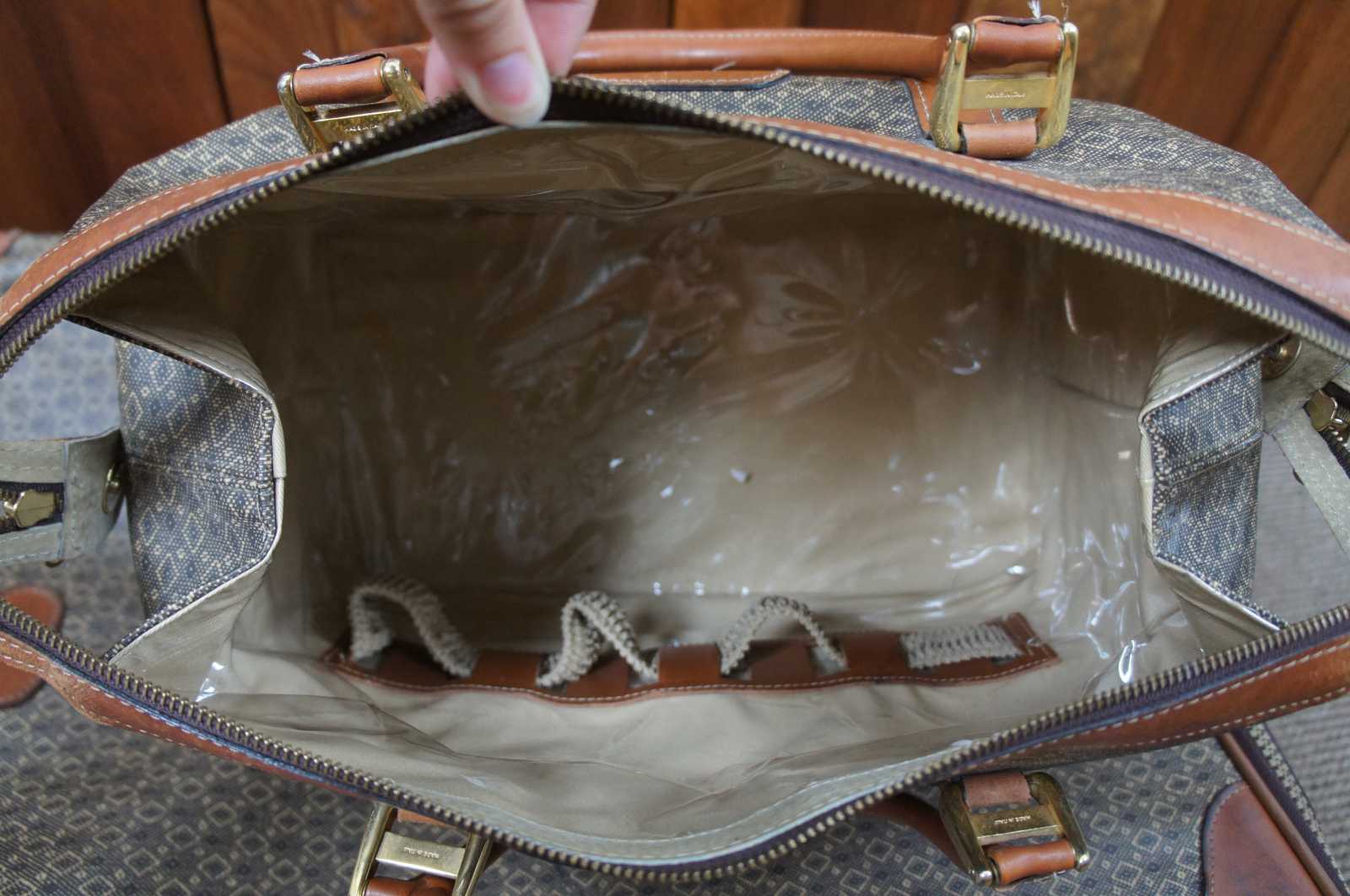 Very Good – Some small spots worn in color/corners of edging on suitcase; see pictures