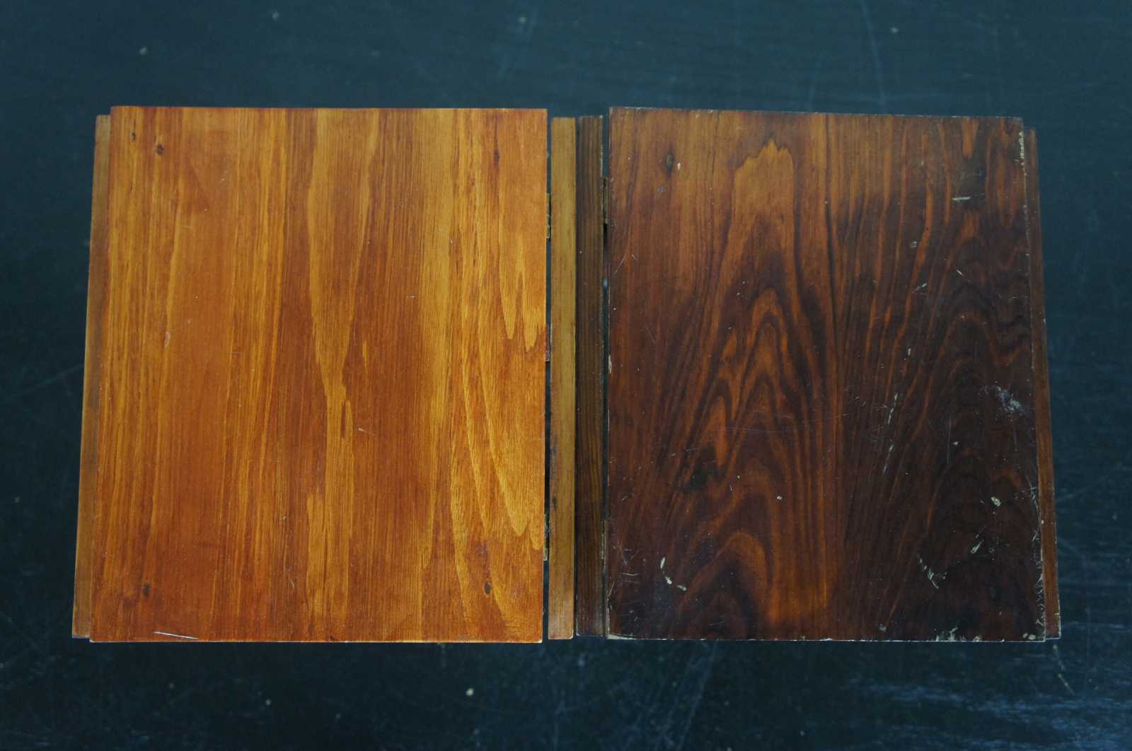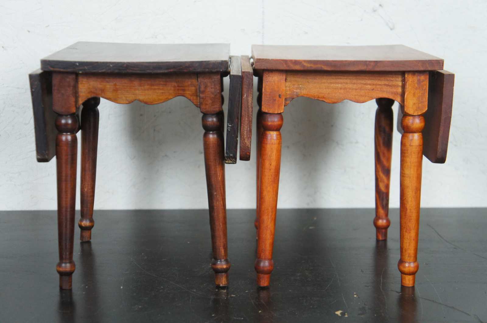 Set of two vintage matching drop leaf doll sized salesman sample tables, from American Heirloom Collection.