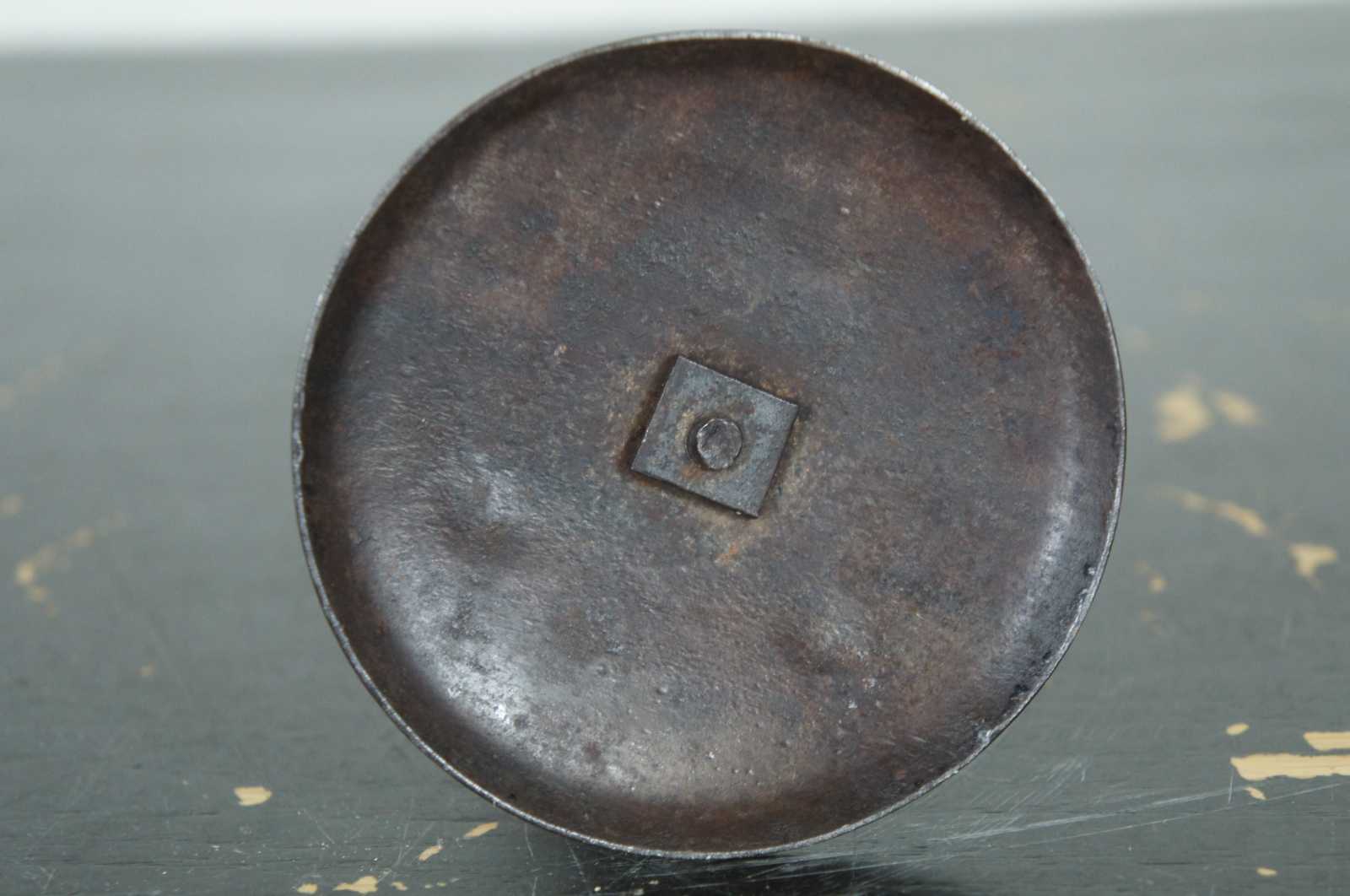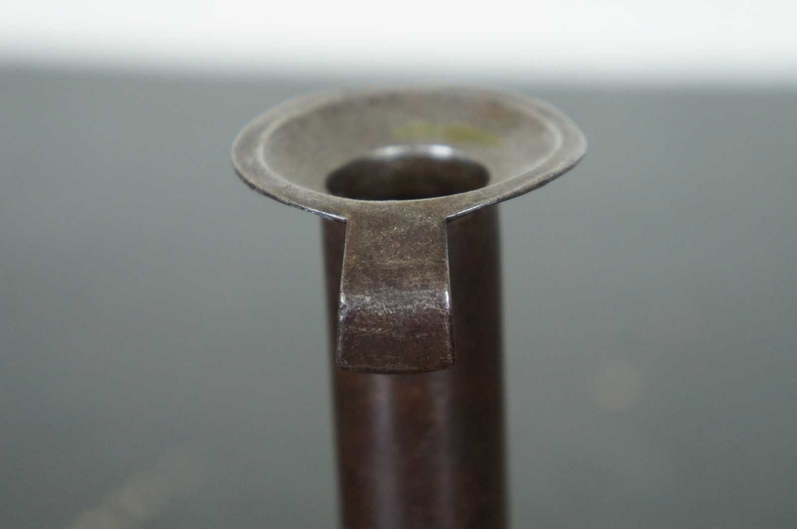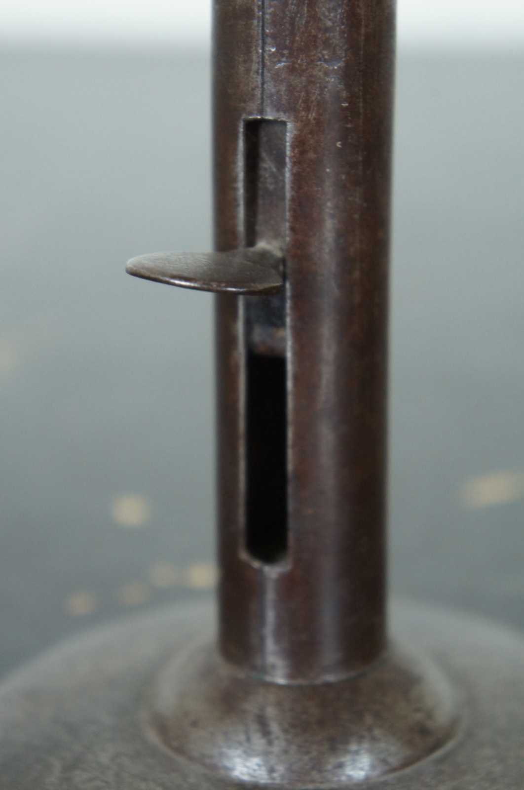 Antique metal candlestick with slide for adjusting the height of the candle.