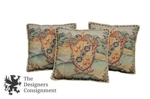 3 Medieval Art Tapestry Throw Pillows Landscape Coat of Arms Cotton Velvet Back