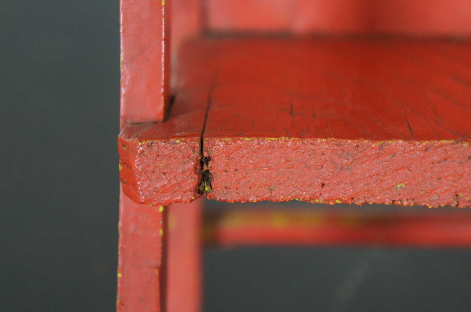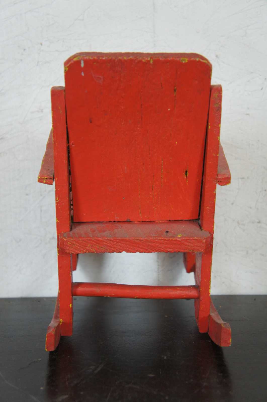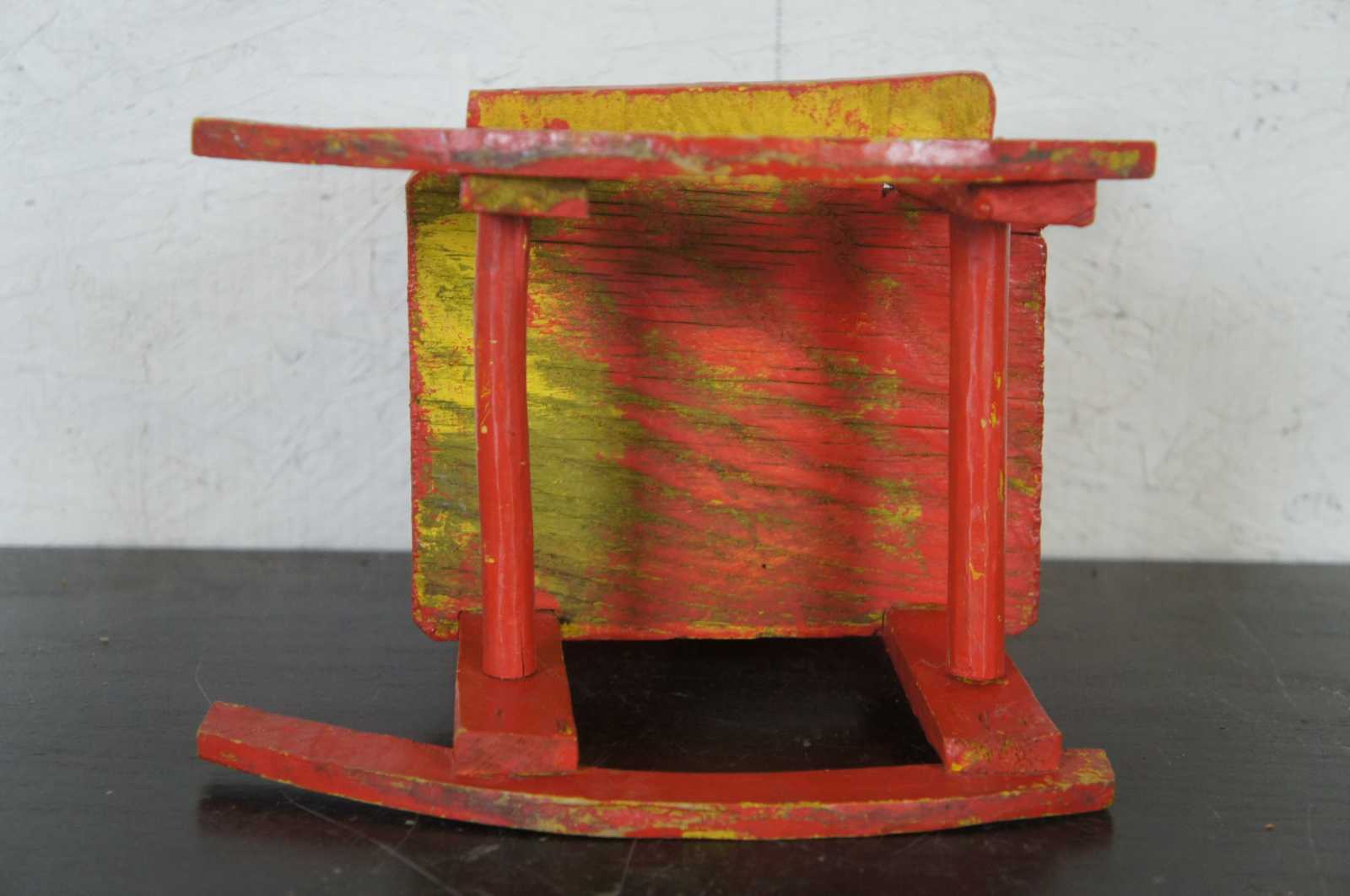 Antique mid 20th century pine rocking chair, finished in red over yellow.