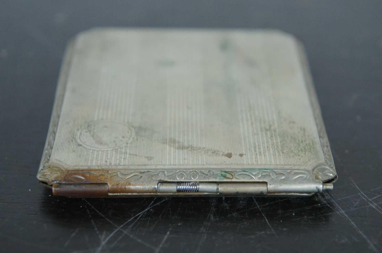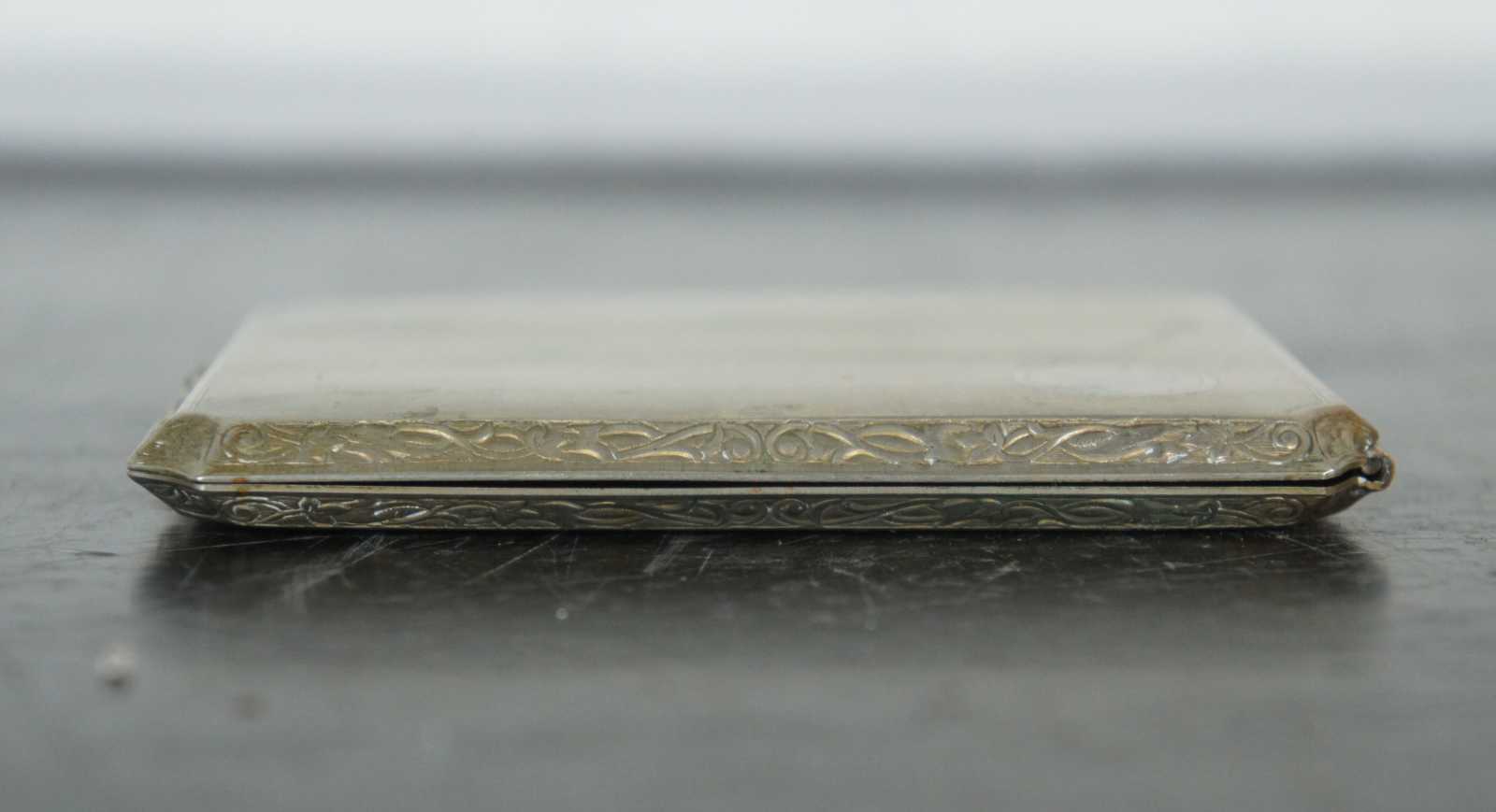 Circa 1920s-30s art deco striped silver plated cigarette case by Elgin America.