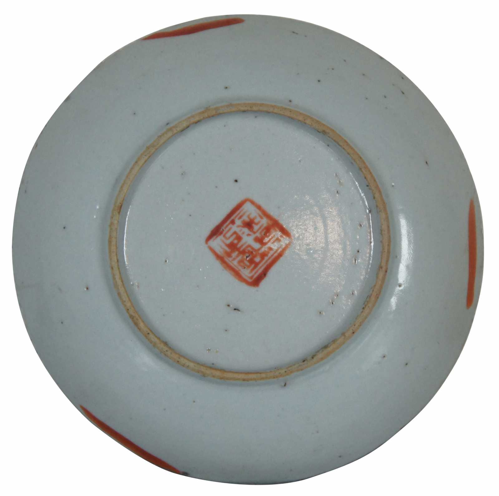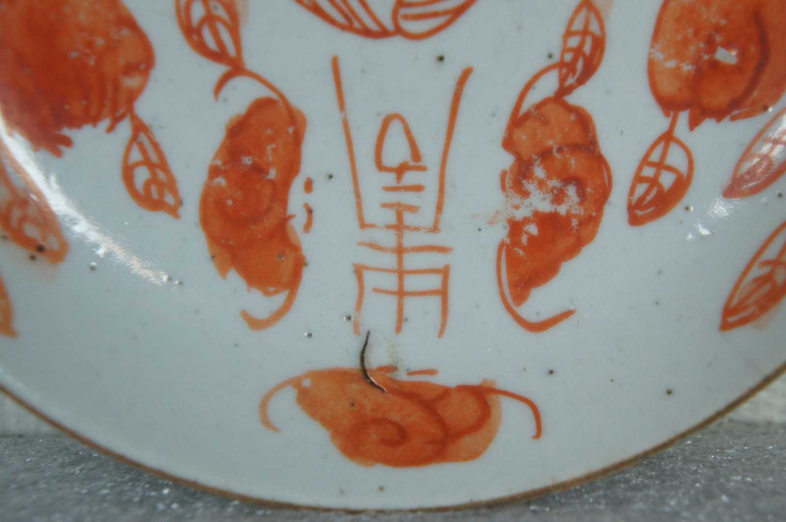 Late 19th century Qing Dynasty Chinese white porcelain dish with hand painted flowers in iron-red.