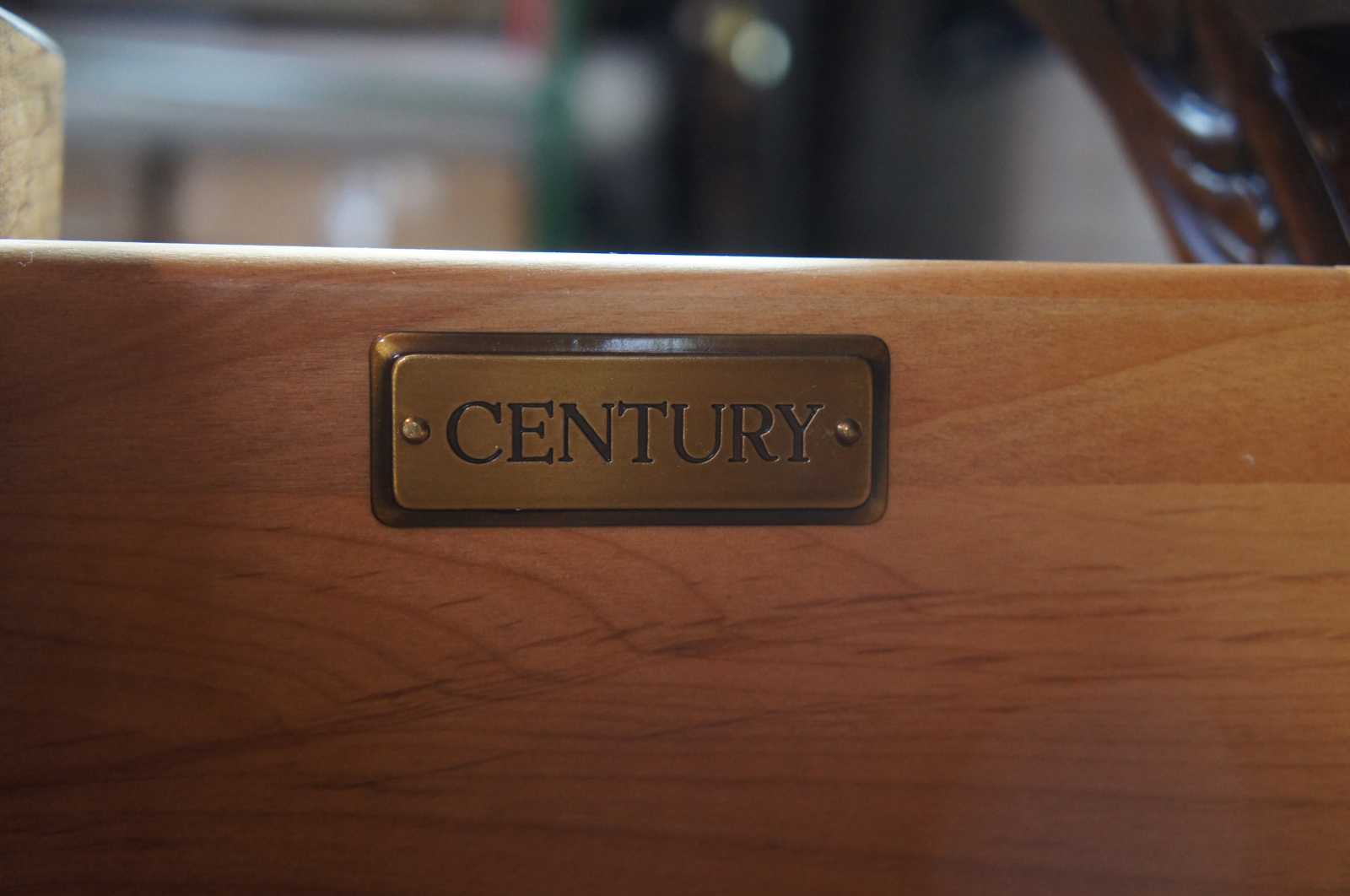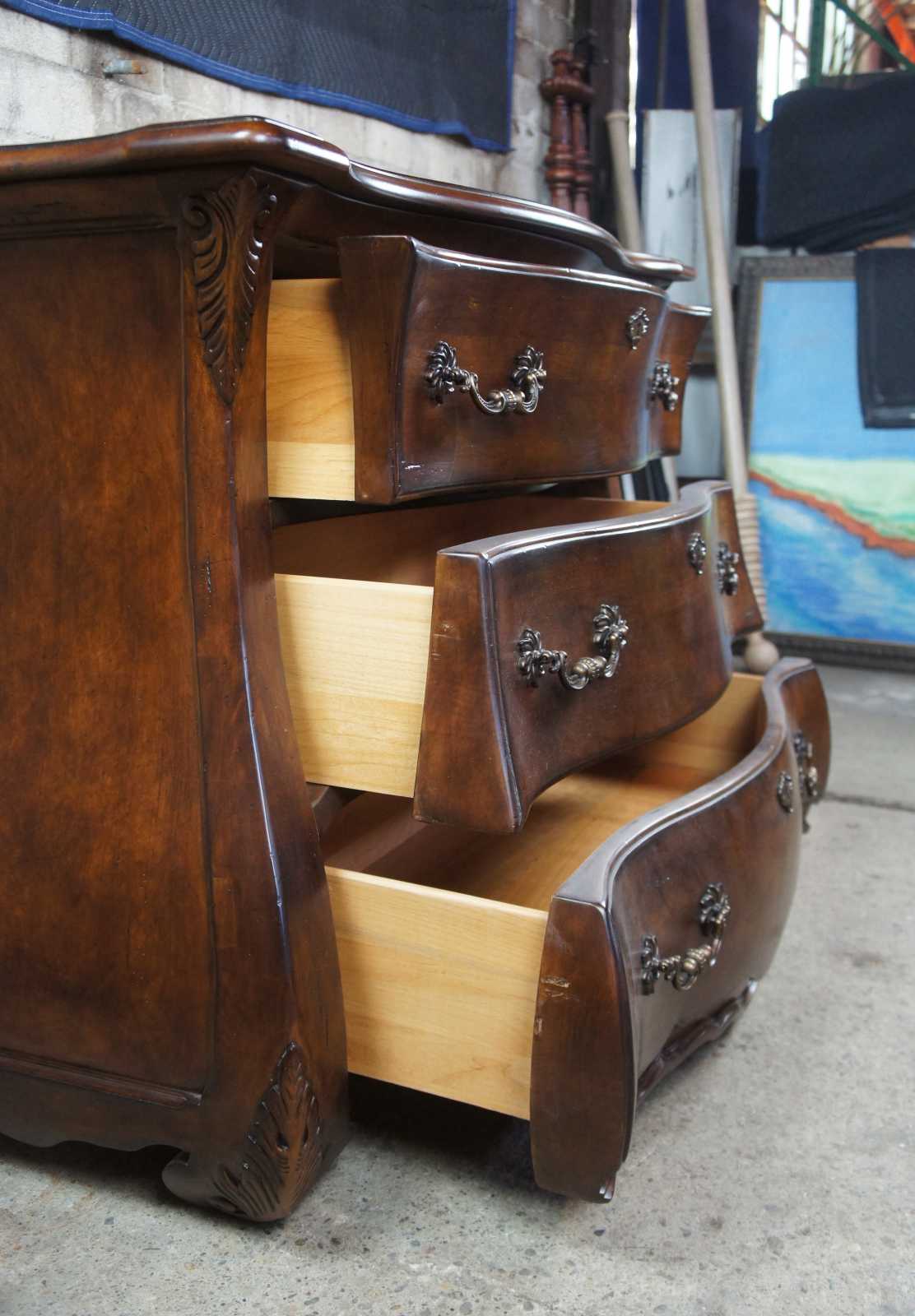 Century Furniture Bombe Drawer Chest. With a serpentine shape and bombé base, this chest makes a statement about your confident style. Featuring three drawers, the lowest one of which extends into a graciously curved apron. Leafy carvings flourish at corners and feet.