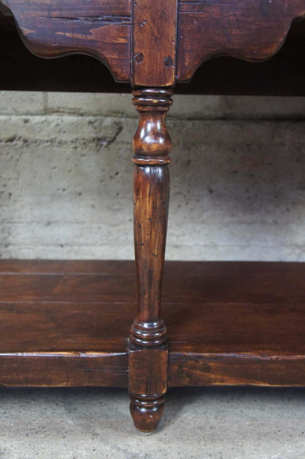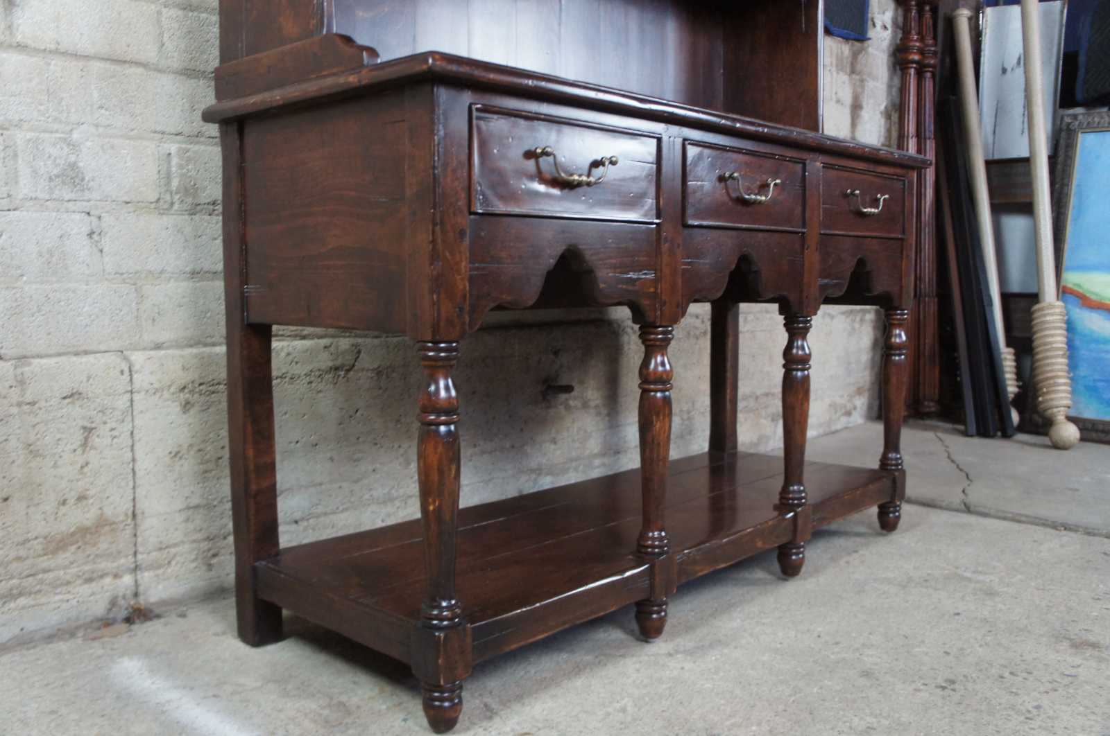 The Sterling Collection H-014 / S-014 English hutch and sideboard. Drawing inspiration from the 18th century Welsch dresser or cupboard, with a long three drawer sideboard and tall hutch for storage. Finely crafted from pine with dovetailed drawers and bail pulls. The Sterling Collection combines four decades of experience with many centuries of European furniture-making tradition.