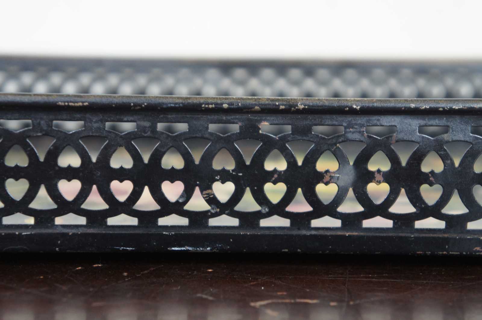 Vintage tole ware hand painted tray with raised sides, black with a gold edge and bouquet of flowers, by Pilgrim Art.