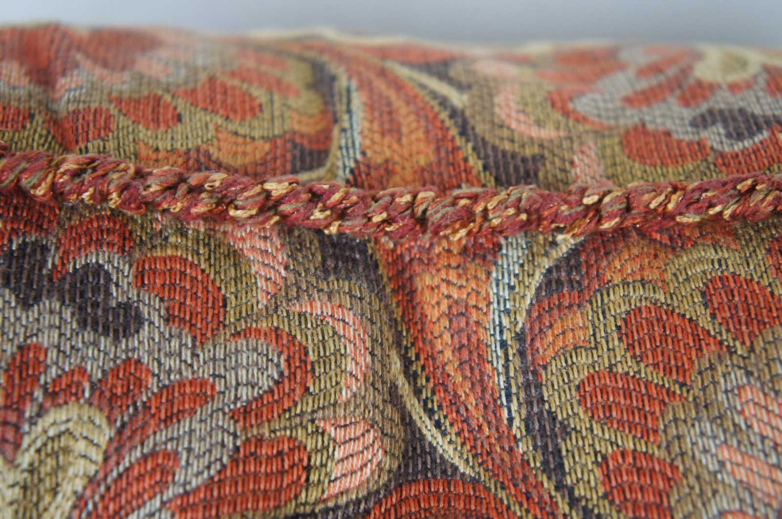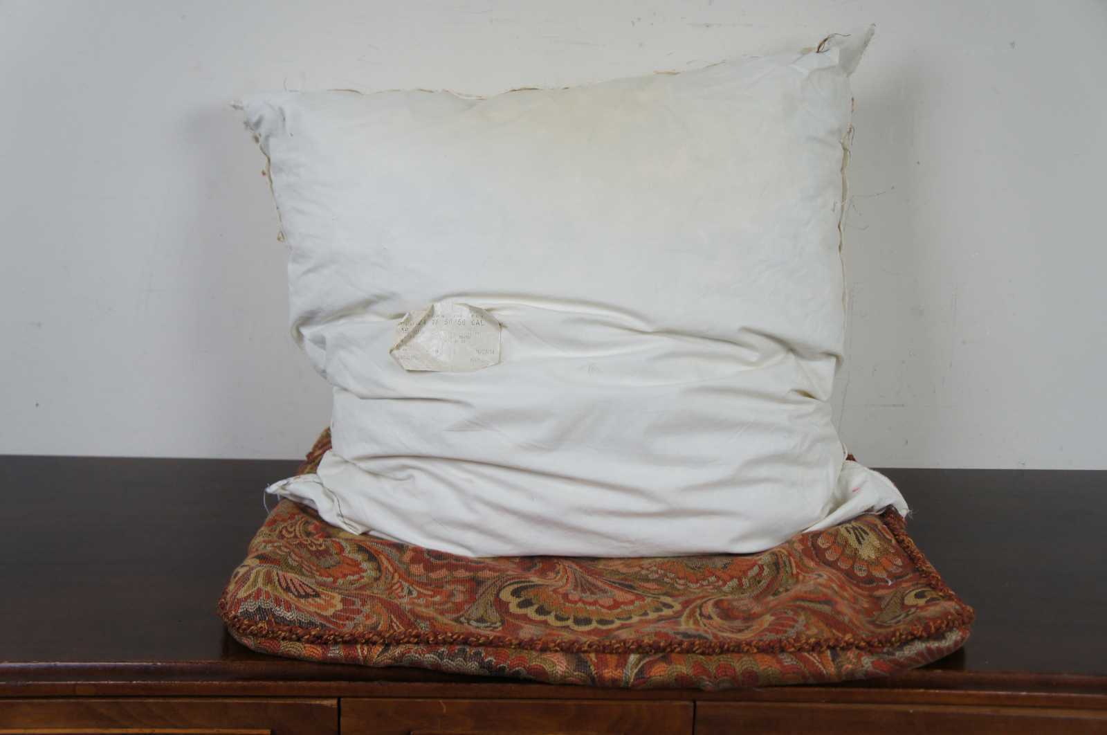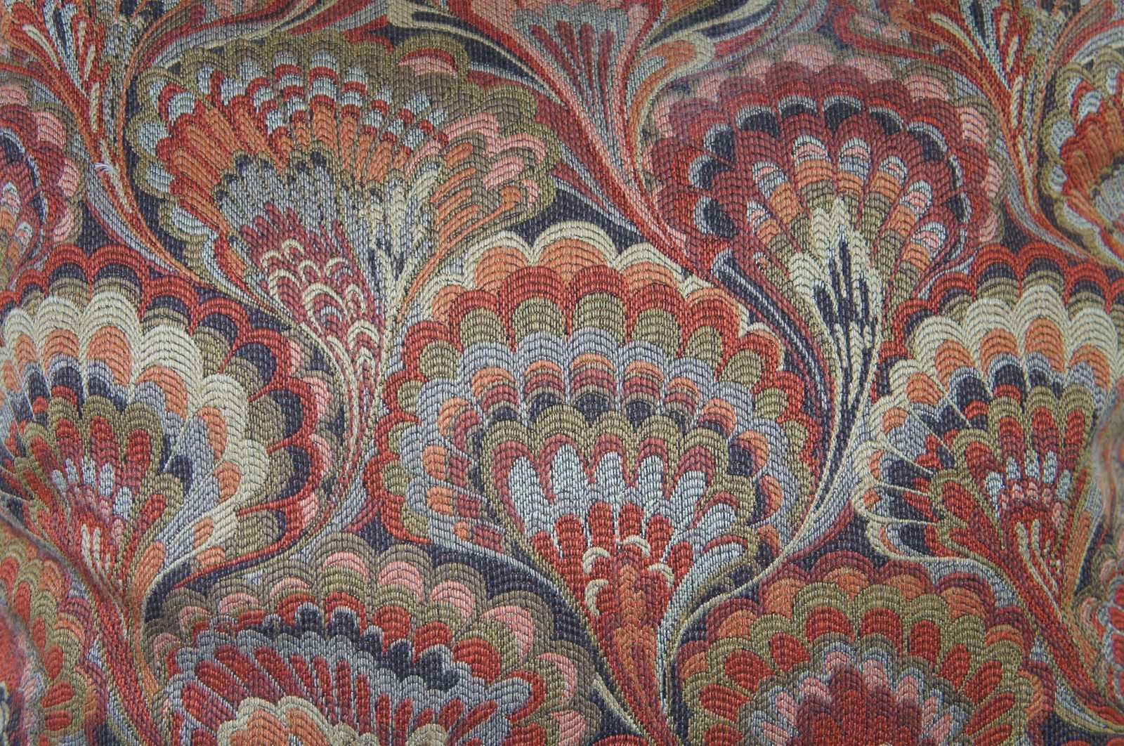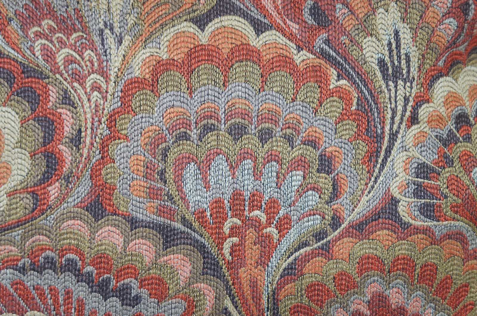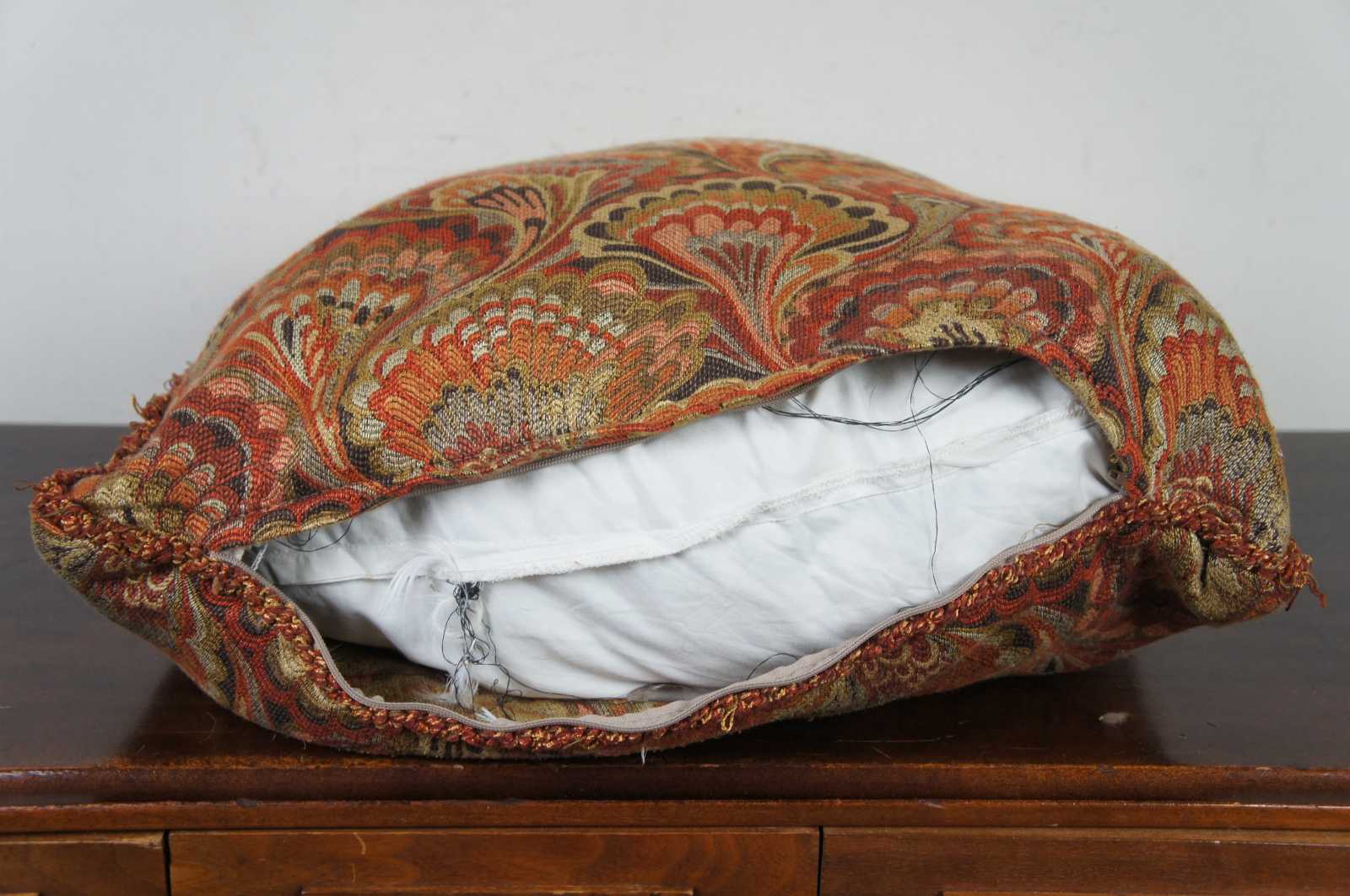 Century Furniture down filled throw pillow with fan patterned cover in reds, oranges and greens.
