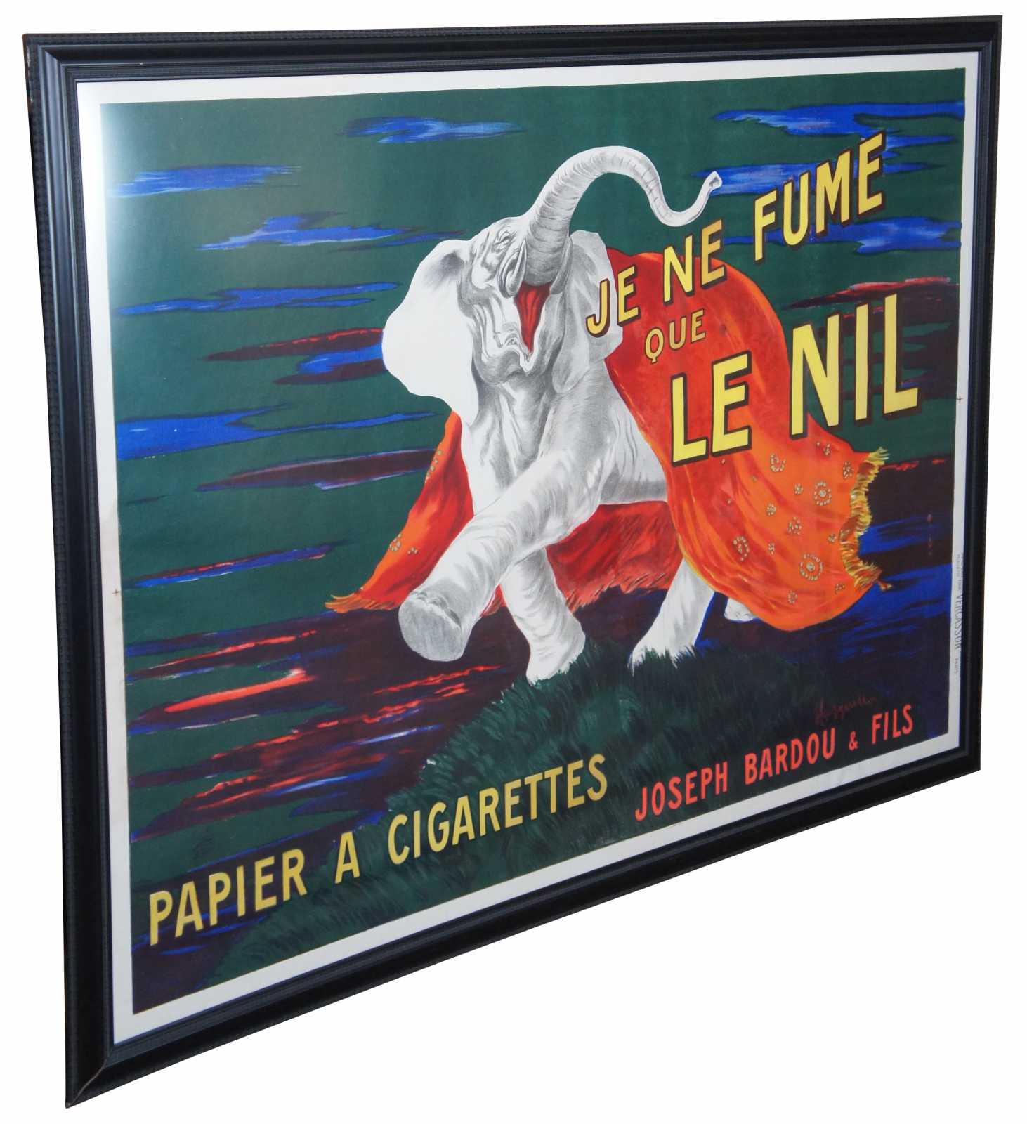 An iconic poster by the master, Leonetto Cappiello, this striking stone lithograph from 1912 features an elephant as the mascot for cigarette rolling papers. Joseph Bardou & Fils. Translates to I only Smoke Paper Cigarettes Nil.