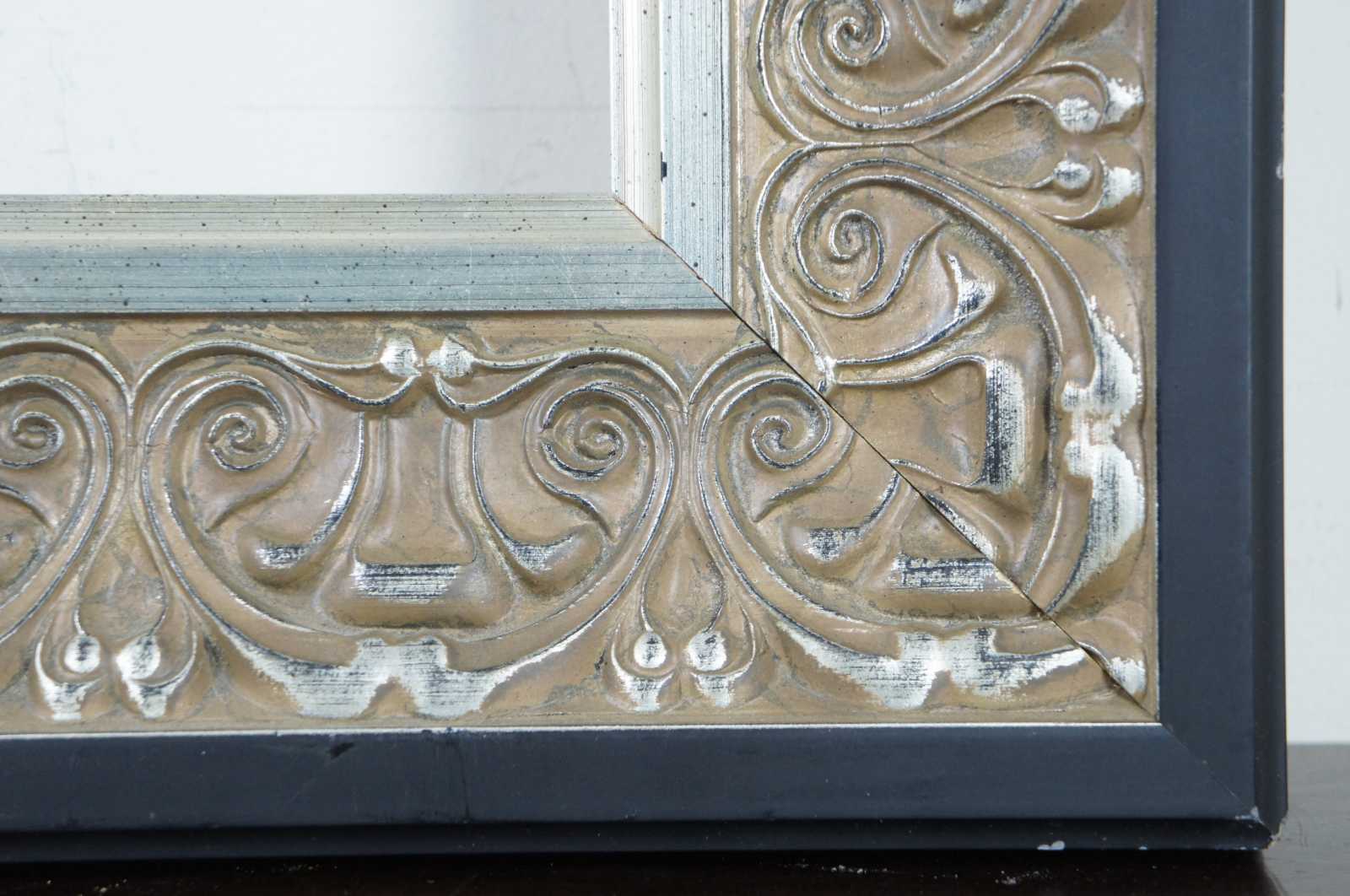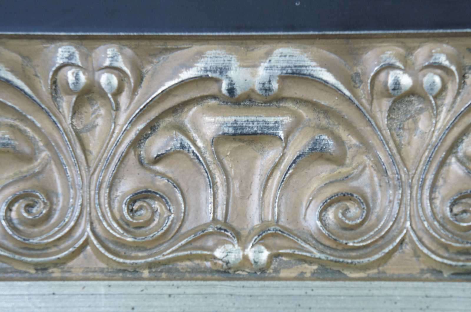 Rectangular wood picture frame with a black border and a floral motif in brushed champagne gold and silver gilding.