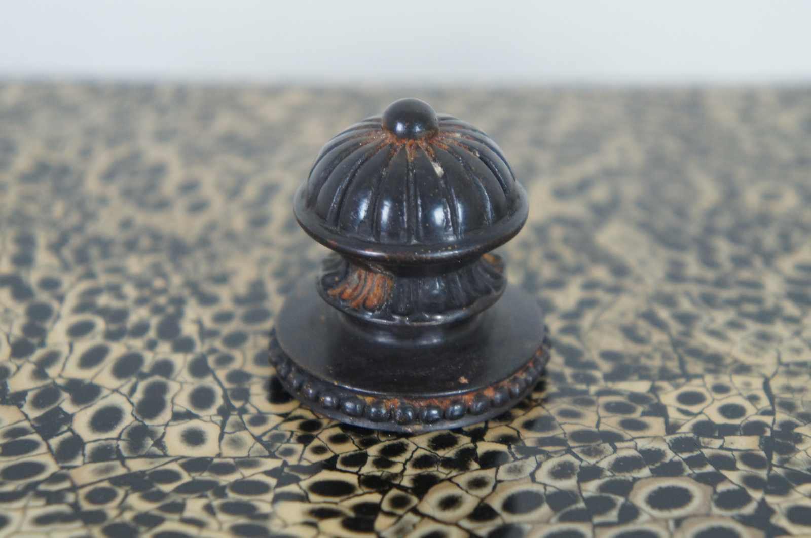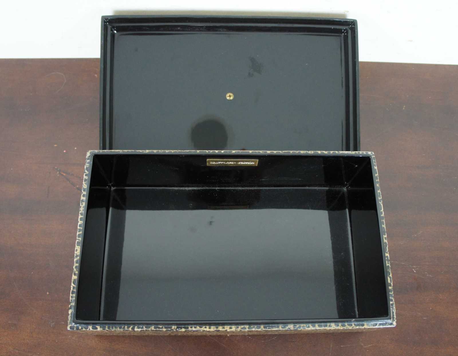 Beige and black faux shagreen snakeskin sytle trinket box with lacquered finish and black interior by Maitland-Smith.