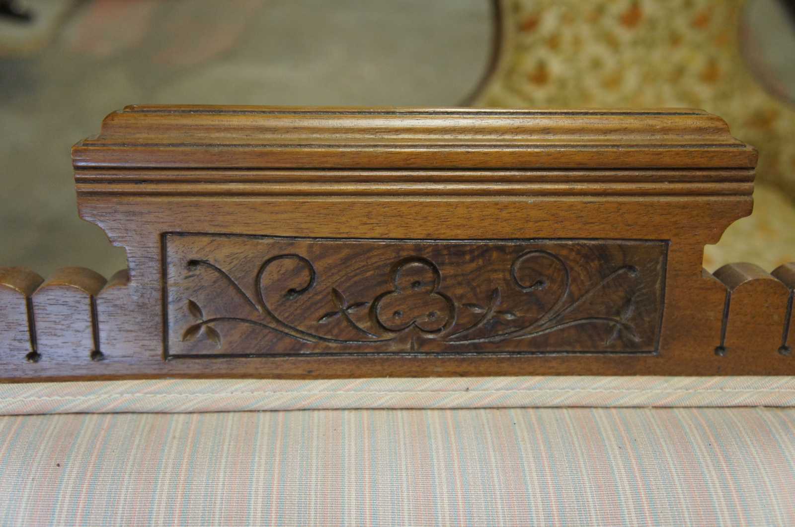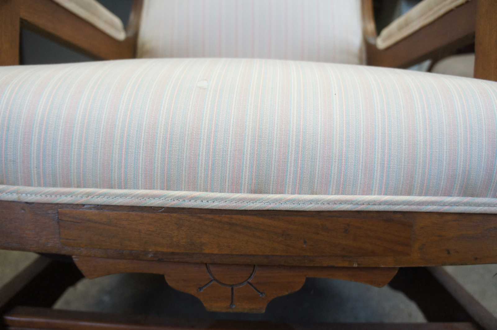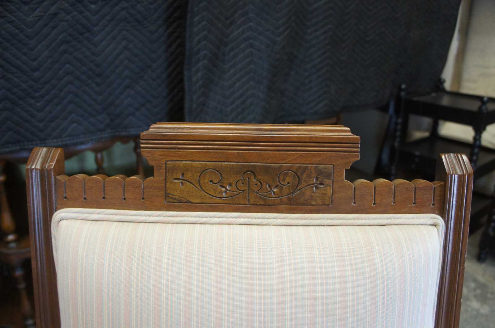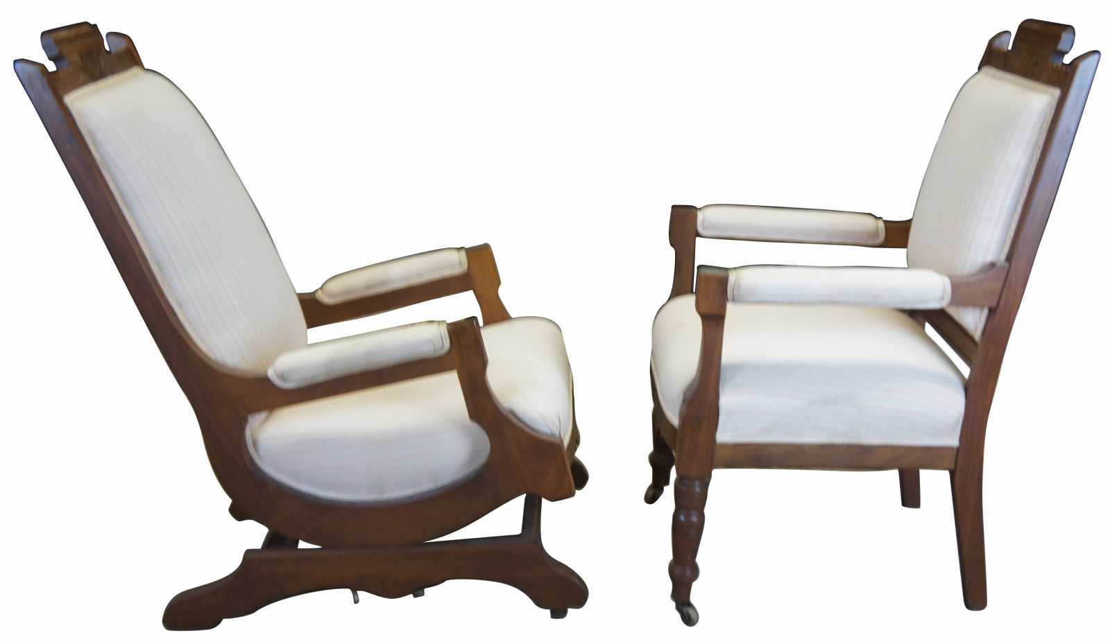 Two late 19th century Victorian eastlake chairs. Made from walnut with burled panels and carved accents.