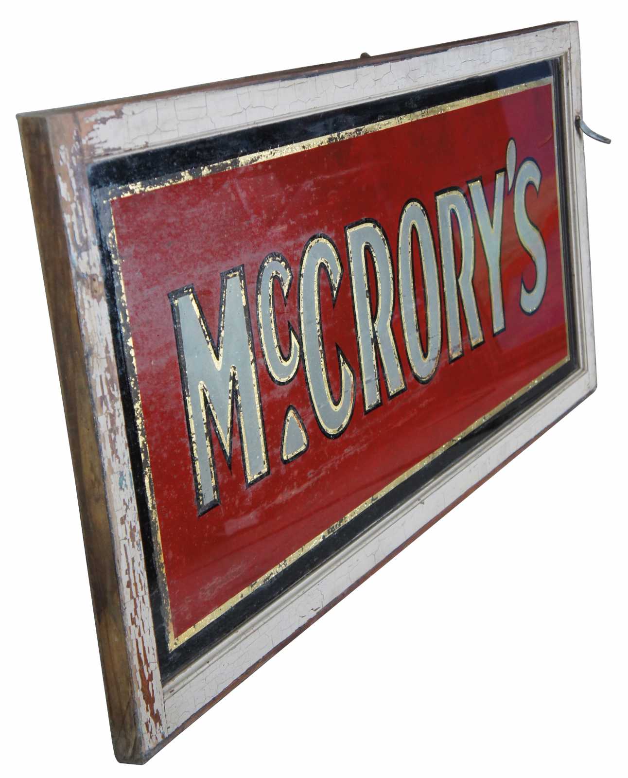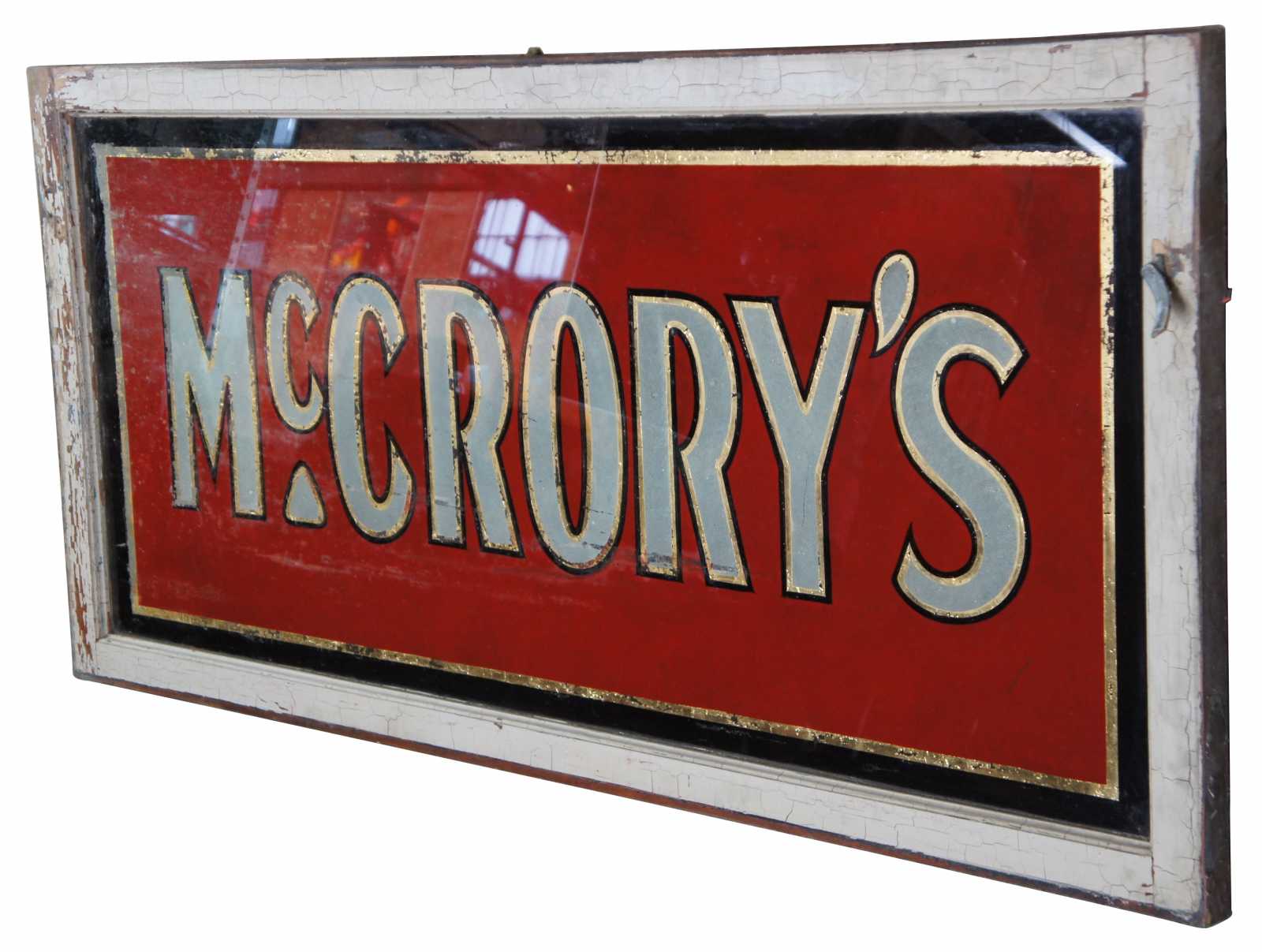 Early 20th century painted mercantile glass window from McCrory's in downtown Dayton Ohio. The original building is being turned into condos and this window was pulled out before demolition. This window was originally a horizontal exterioir front opening window.