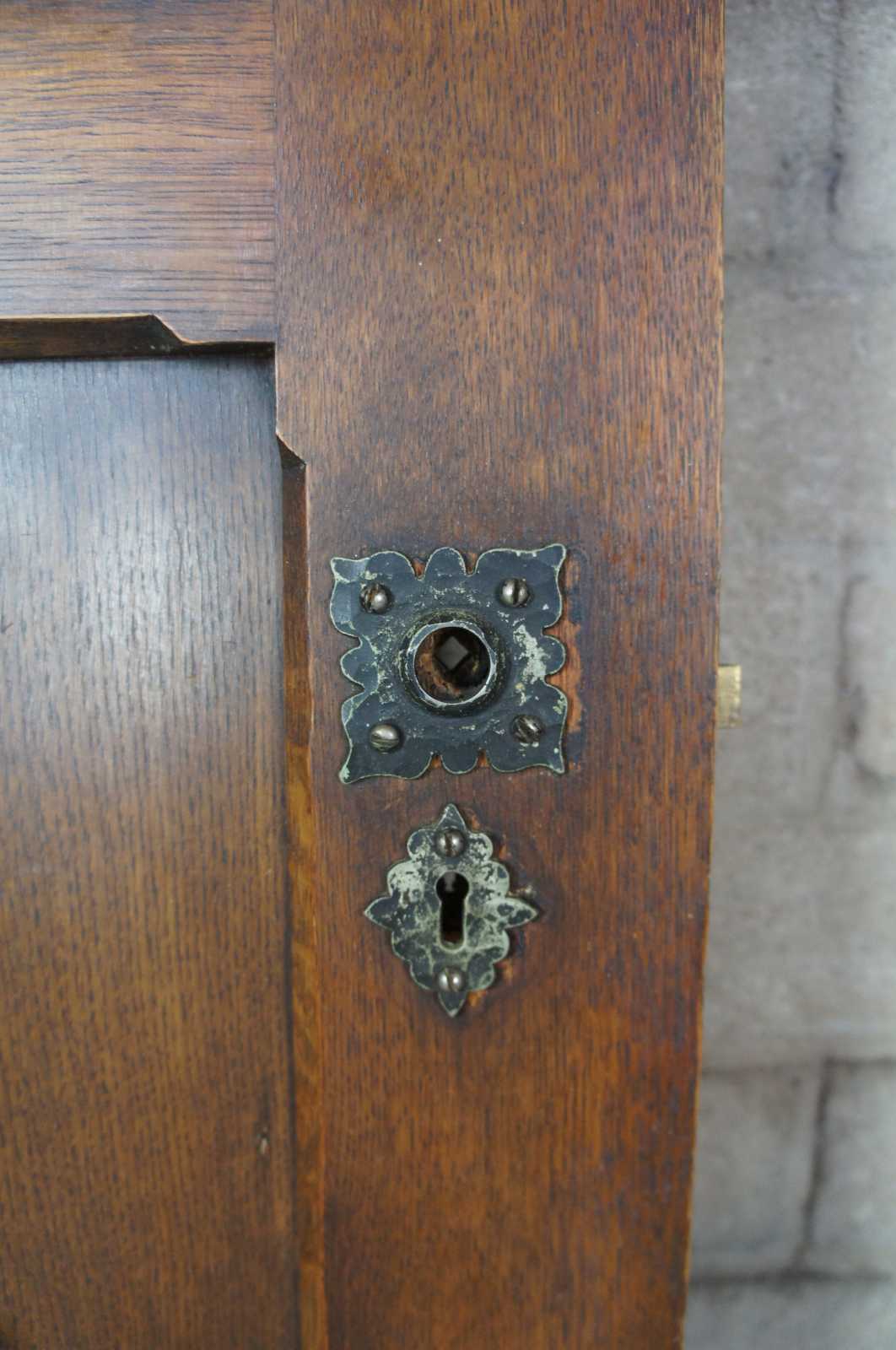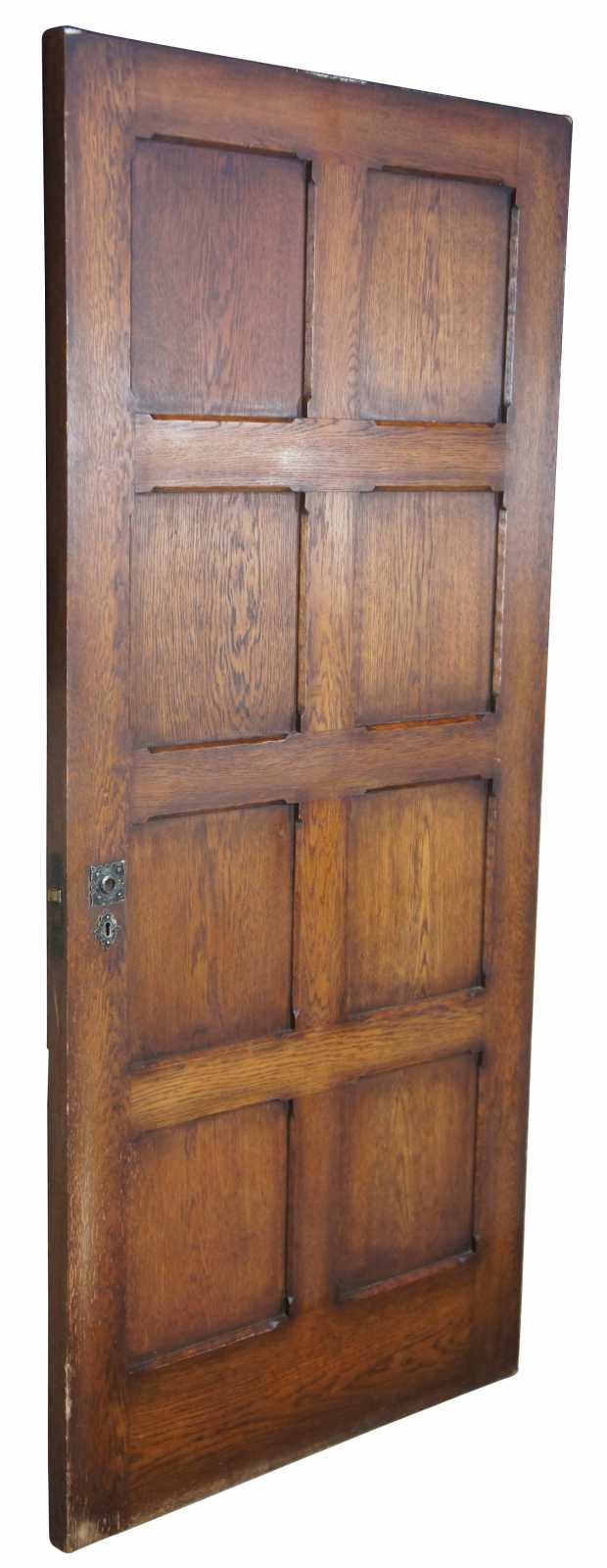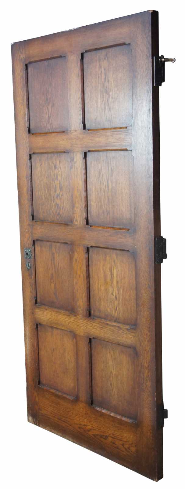 Early 20th century oak reclaimed door. Features eight panels in a grid pattern with Spanish Revival design. From