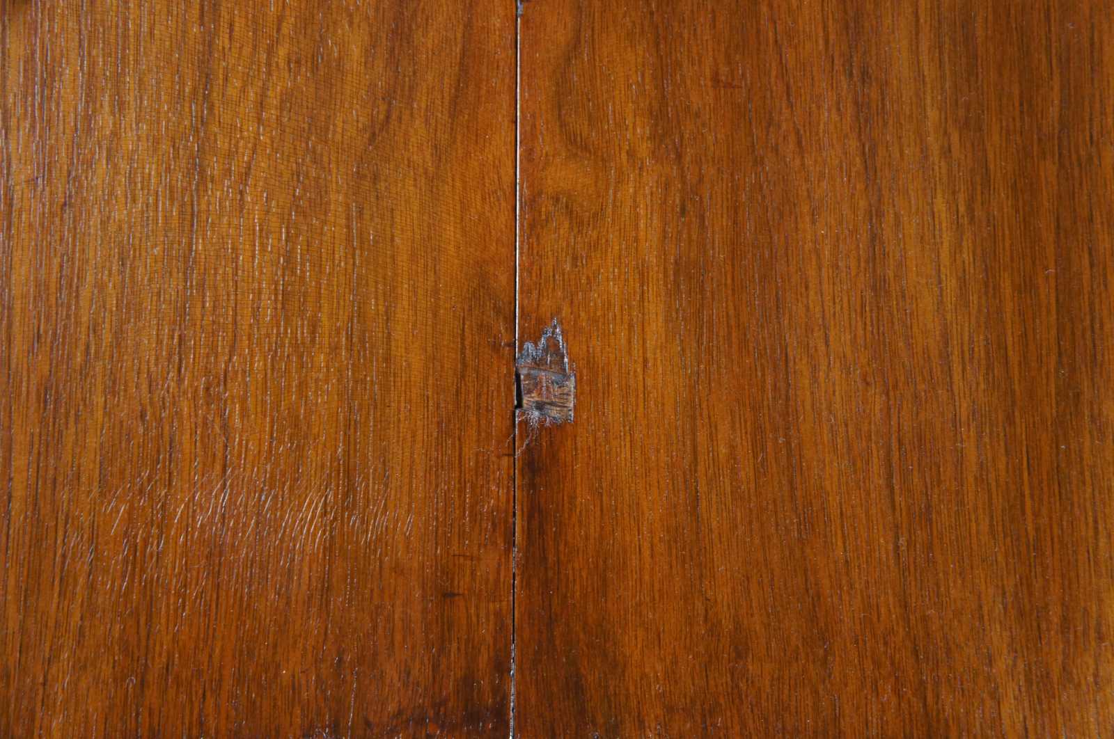 Some alligatoring to finish, veneer loss, veneer lifting to edges, distressing, see pictures.