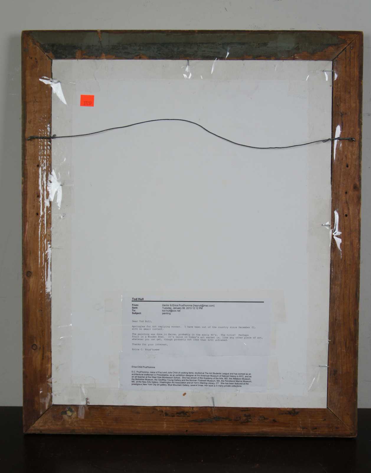 Prud’homme learned to draw from her father and uncle, Charles and Paul Child, both artists. She studied with Robert Beverly Hale and Roberto De Lamonica at the Art Students League of New York, and did graduate studies in anthropology at the University of New Mexico. She worked as an architectural draftsman in Philadelphia and as an exhibition designer at the American Museum of Natural History in New York City. She has been a member of the cooperative Blue Mountain Gallery in New York since 1992.