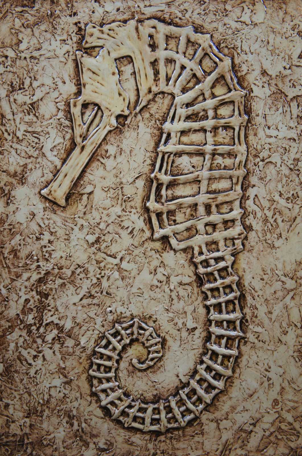 Acrylic on canvas painting of a seahorse skeleton by Alabama and New Orleans based artist Heather Petterson. A great piece for any beach, ocean or nautical themed house.