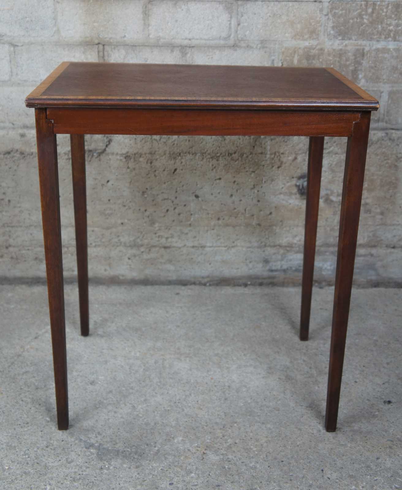 Mid 20th century Sherton / Federal inspired accent table. Made from mahogany with banded top over tapered legs.