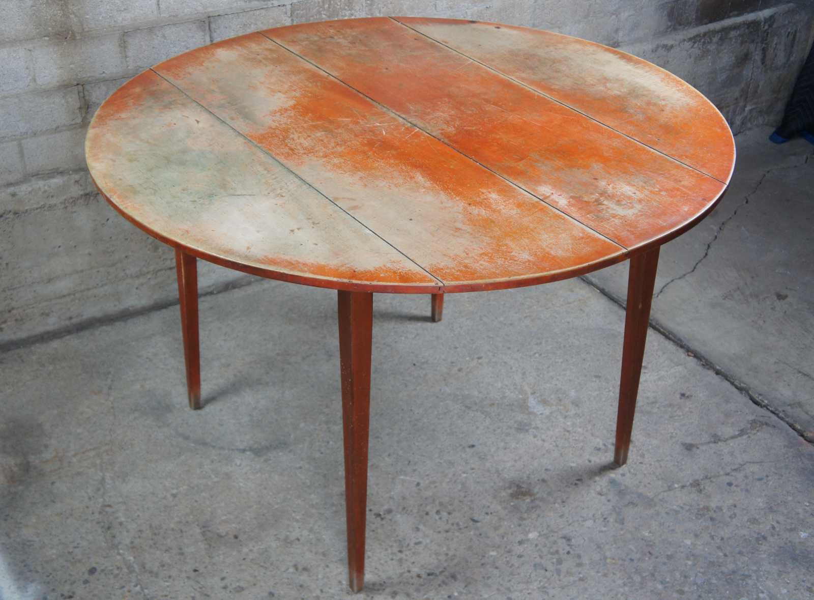 Circa 1980s David T Smith Shaker style American pine painted breakfast table. Features a round planked top over square tapered legs. David T Smith out of Morrow Ohio, is world renowned for 18th and 19th century American reproduction furniture. David has been published in a variety of magazines to recoginze his incredible master craftsmanship.