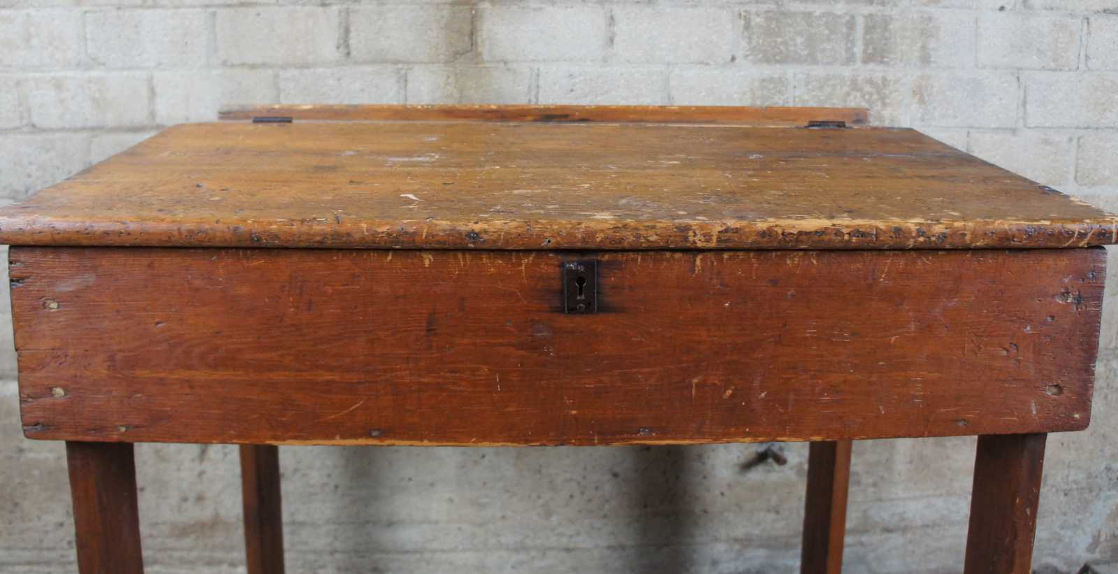 American pine slant top writing desk, circa 19th century. Features an aged distressed patina. Great for use or display!