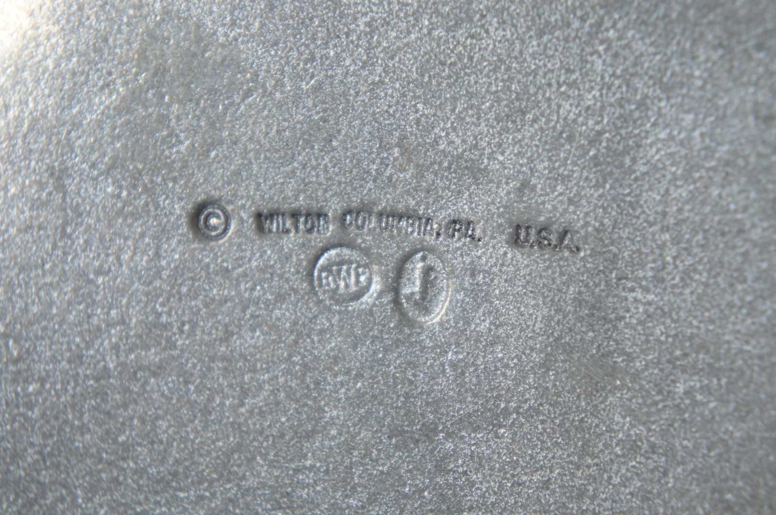 Rounded rectangular pewter serving platter by Wilton Mount Joy.