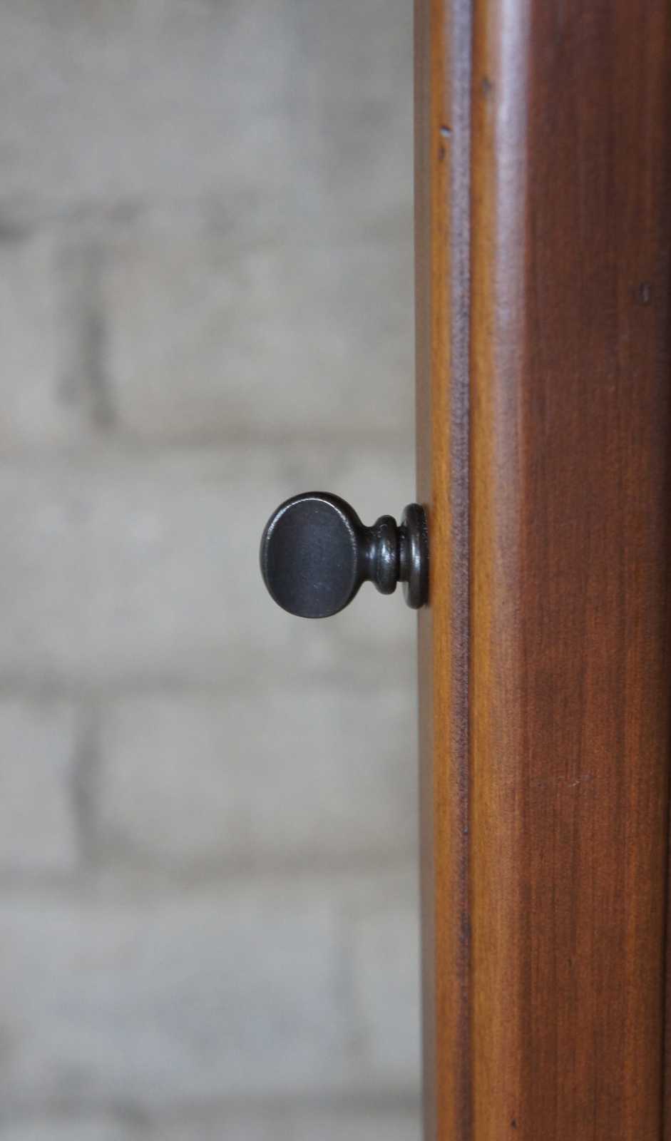 Traditional Cheval or dressing mirror. Made from oak with a light brown finish. Features an octagonal mirror on swivel mount with finials and trestle base.