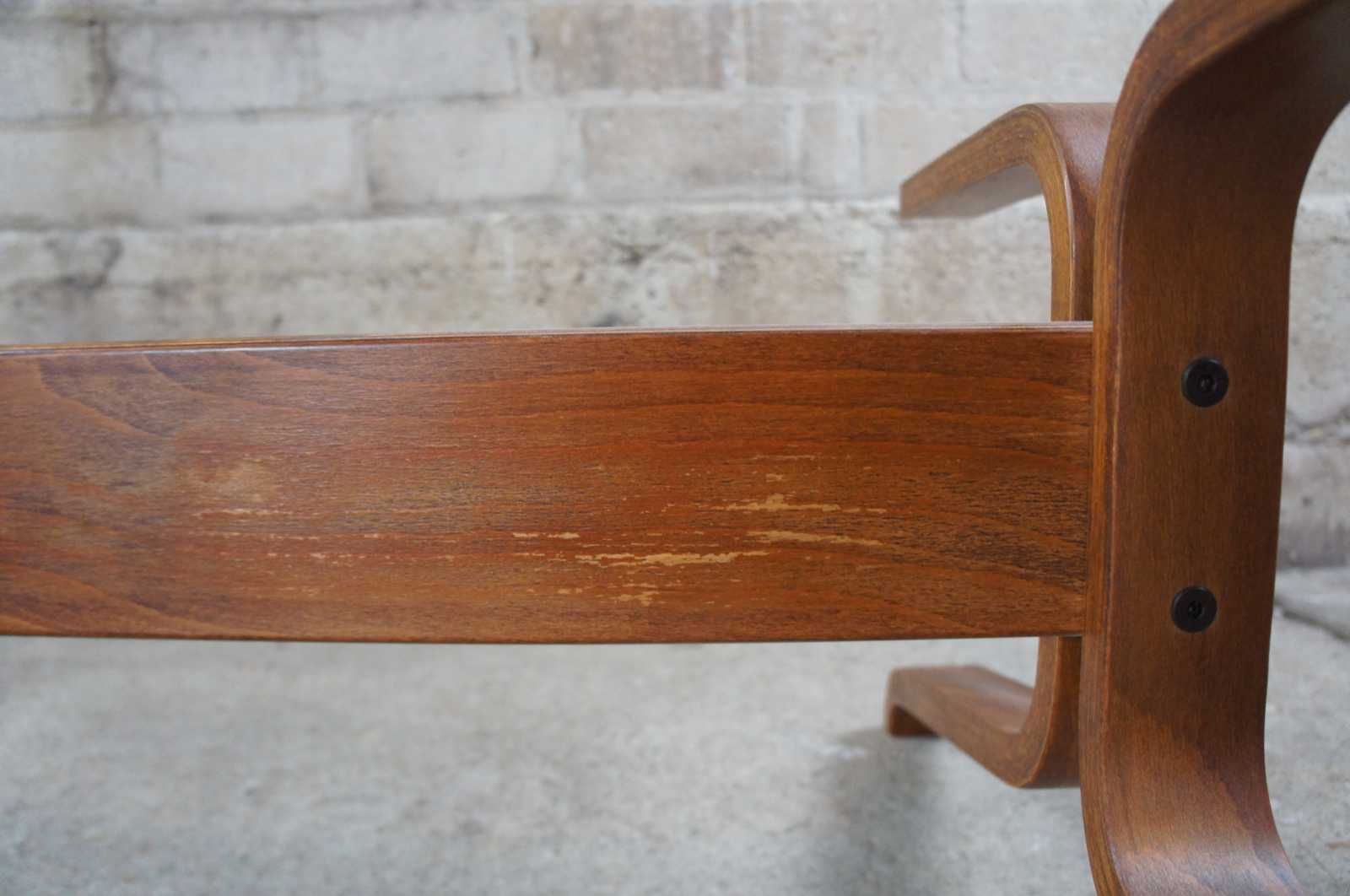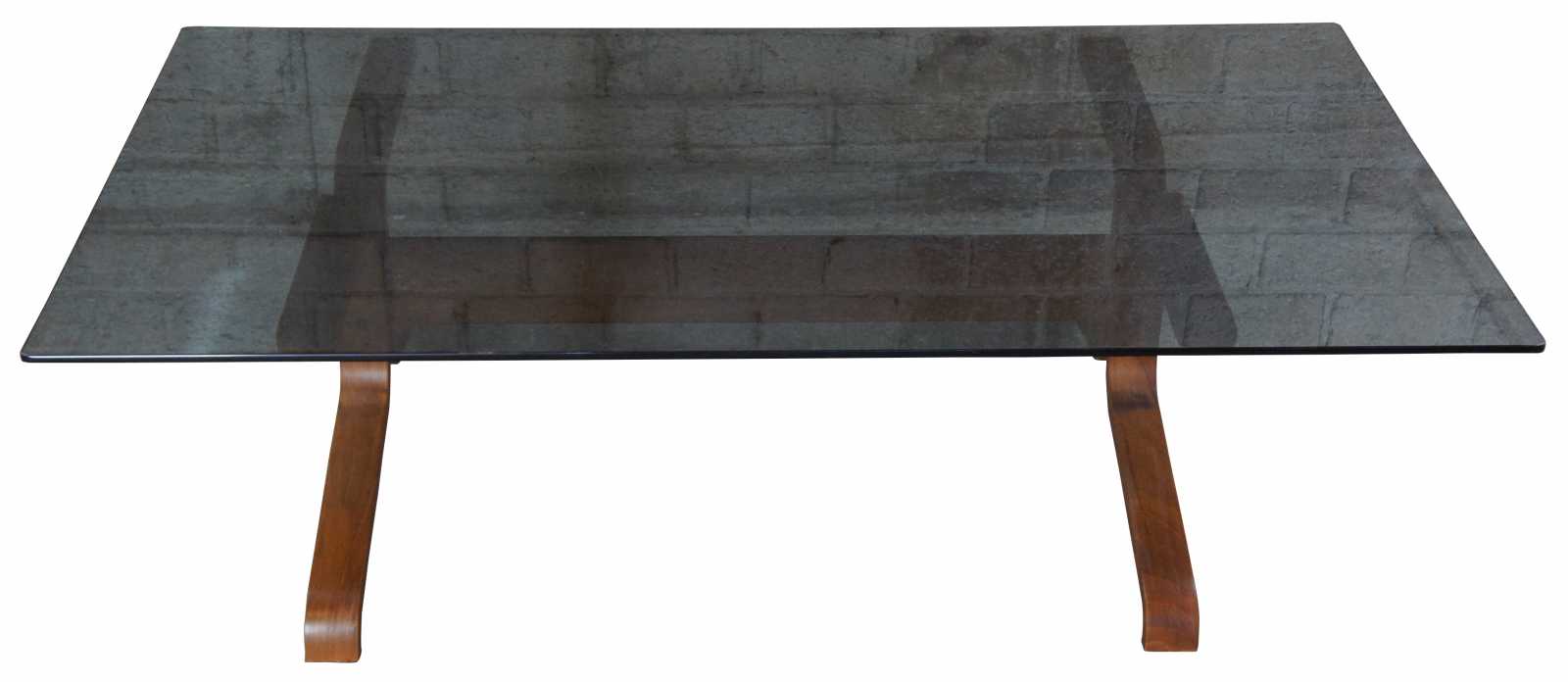 Ingmar Relling for Westnofa Siesta Coffee Table, Circa 1960s. Features a smoked glass top over a teak bentwood base.