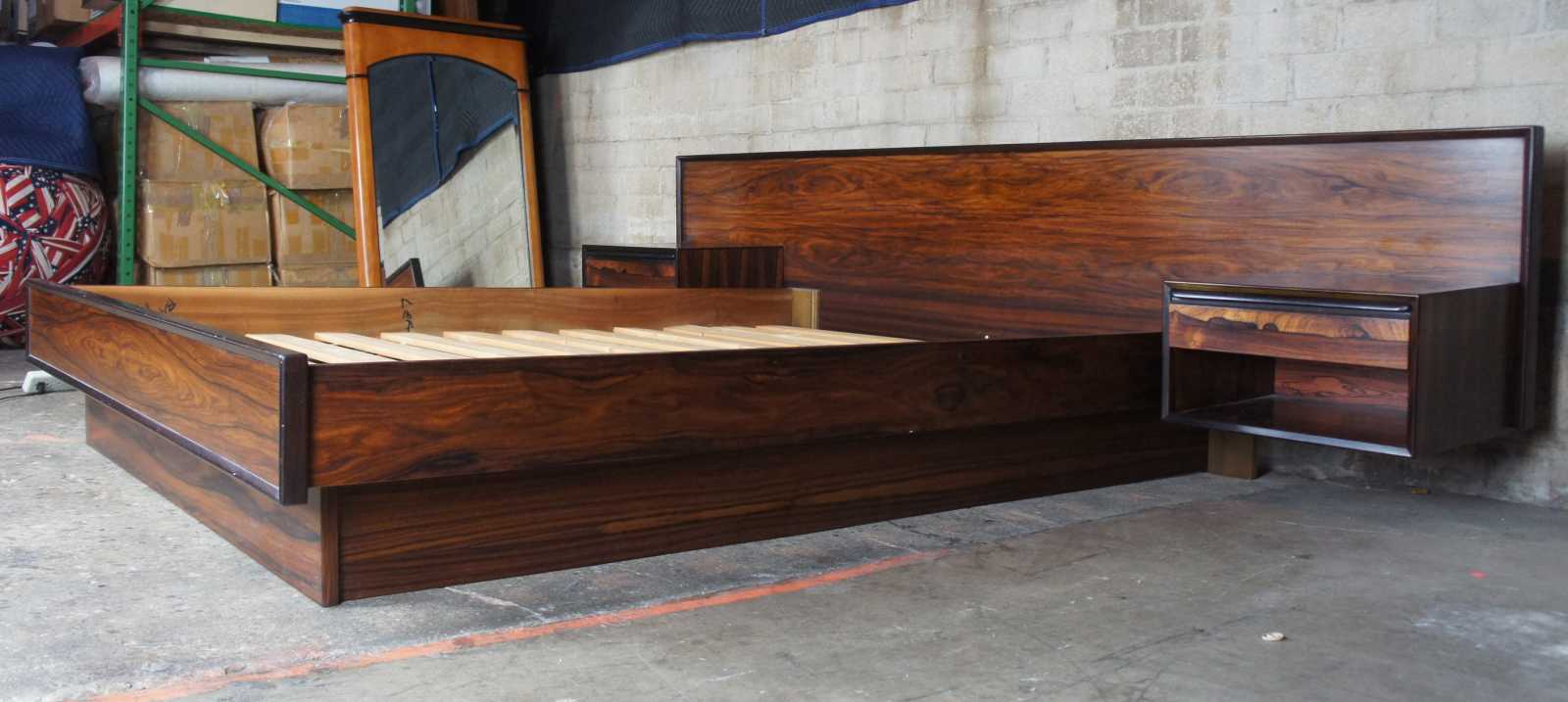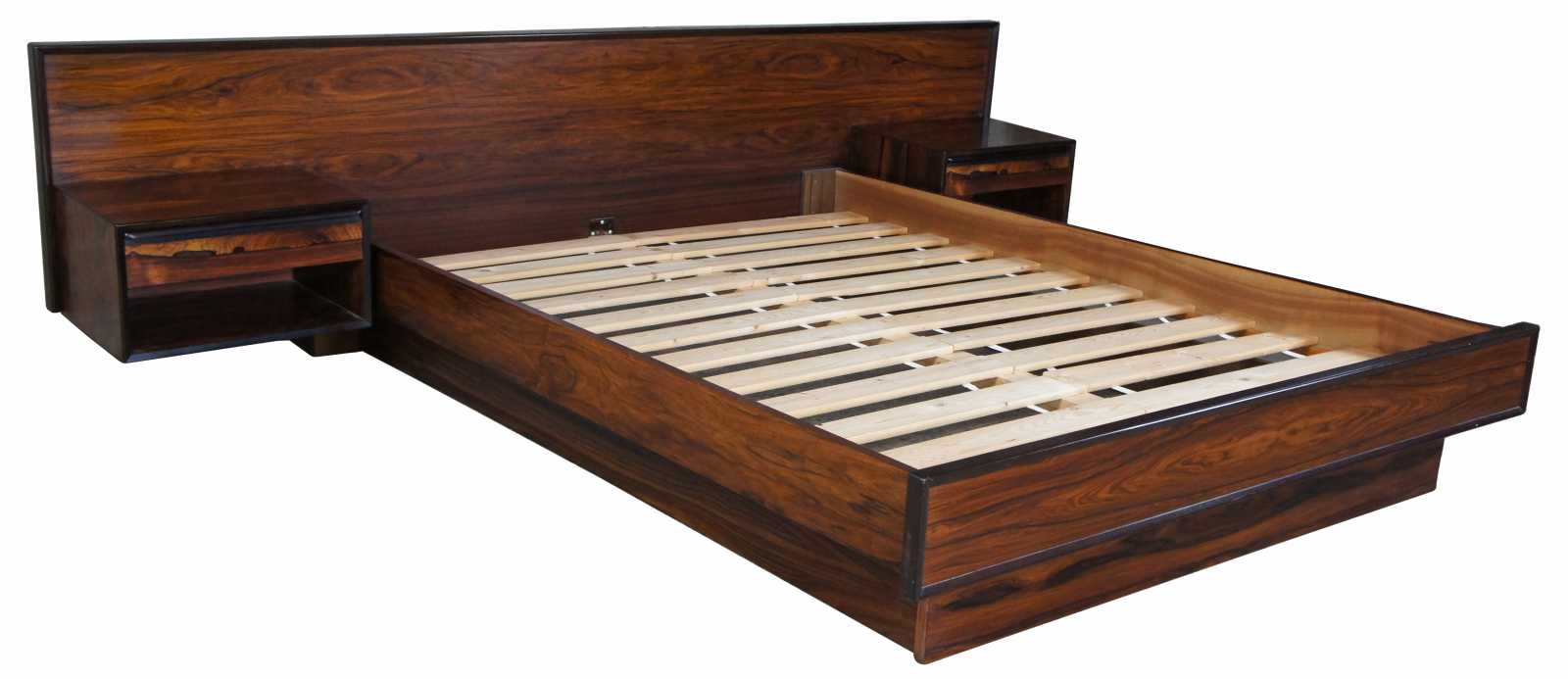 Circa 1970s Westnofa Platform Queen size bed with floating nighstands. Made from Bazilian Rosewood with elegant minimalist lines. The perfect statement for any space.