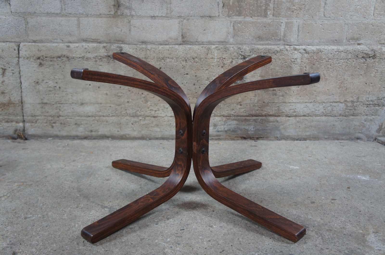 Ingmar Relling for Westnofa Siesta Coffee Table, Circa 1960s. Features a smoked glass top over a teak bentwood base.