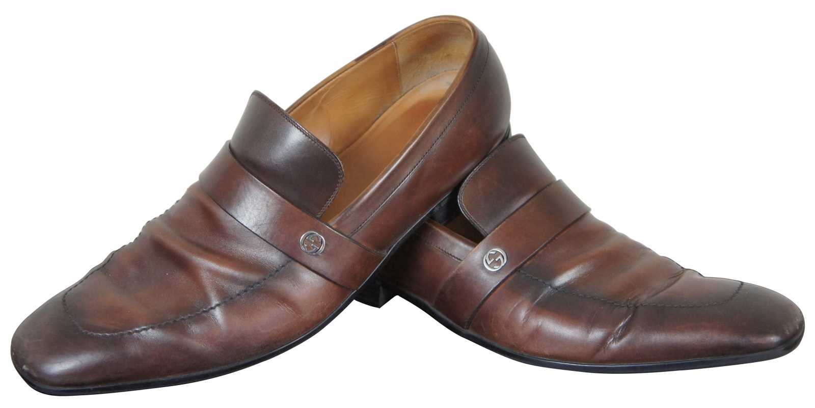 Gucci mens leather slip on loafers in Rodeo Scuro, style number 256600 BLM00 2039.