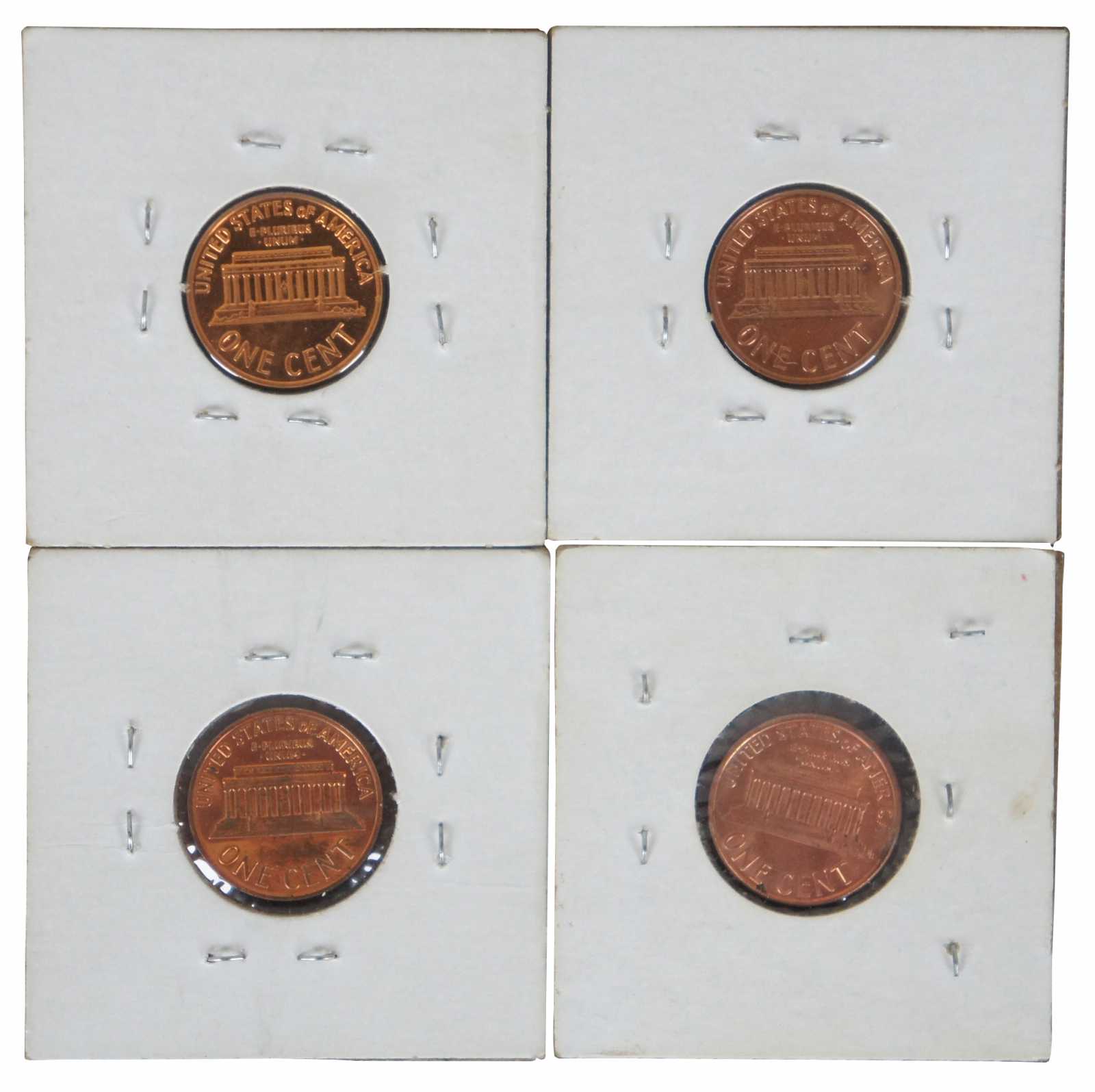 Set of 4 proof pennies featuring Abraham Lincoln’s bust on the face and the Lincoln Memorial on the reverse.