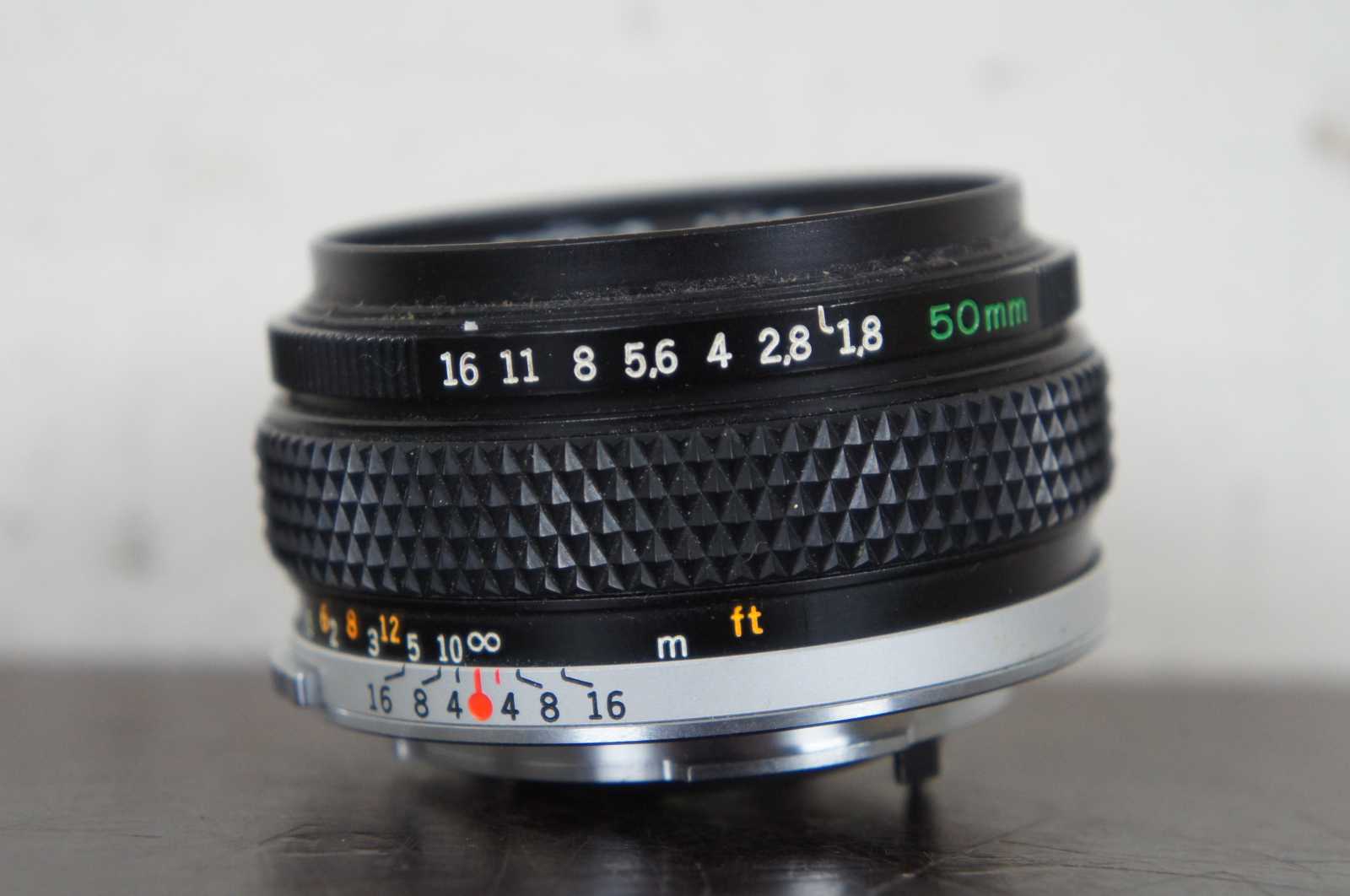 Vintage Olympus OM System Zuiko MC Auto-S 50mm f 1.8 camera lens in original box with instruction booklet.