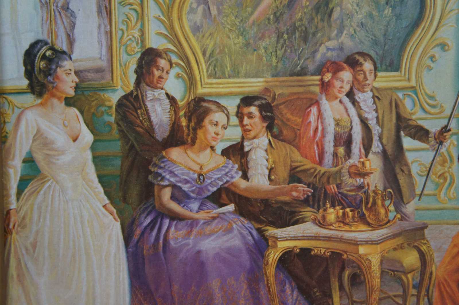 Framed lithograph print sold by Windsor Art Products featuring a scene of antique courtiers watching musicians. The name Peter V. Bianchi is visible in the lower right although the title plate on the frame spell it “Bianci.” / BIO: Mr. Peter Vieri Bianchi, 80, of Sunhigh Drive, Thurmont, died Wednesday, Jan. 3, 2001, at Frederick Memorial Hospital.
