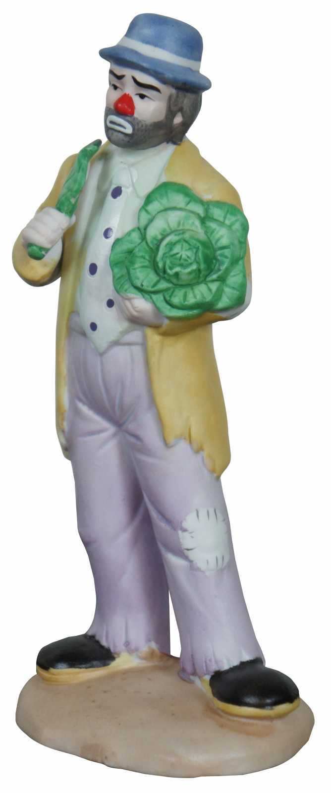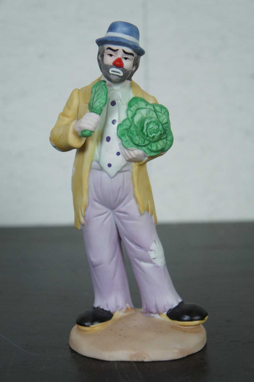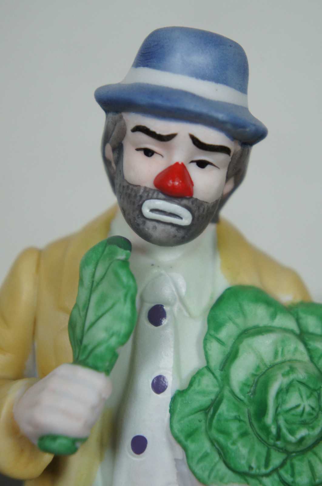Flambro porcelain hobo clown figurine #9900D, “Eating Cabbage” from the Emmett Kelly Jr Signature Collection. Includes box.