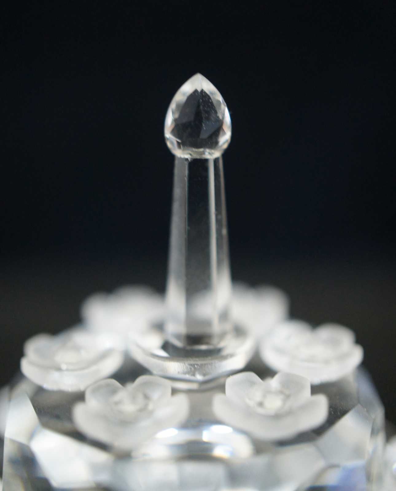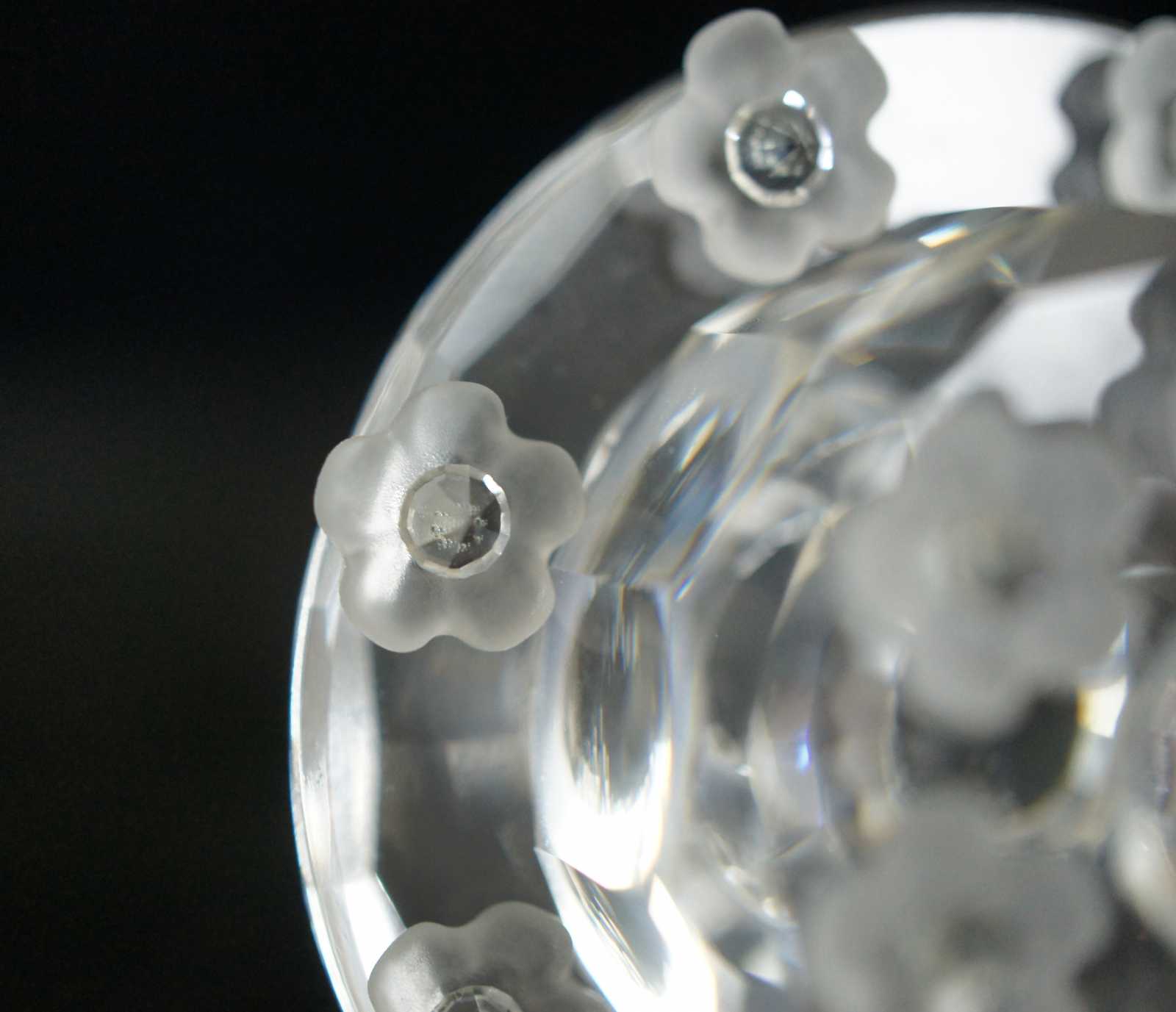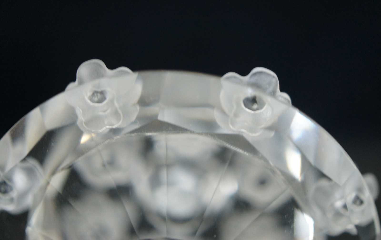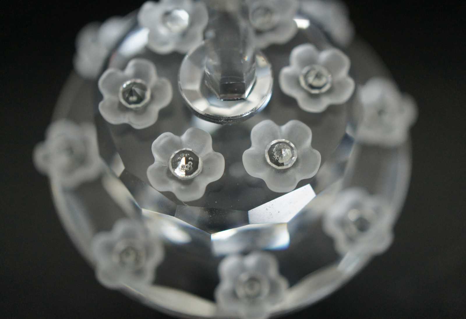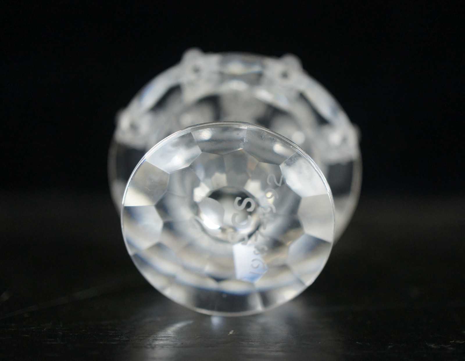 Swarovski SCS 1987-1992 crystal birthday cake figurine featuring flowers on the cake stand and single tier cake with a single candle on top.