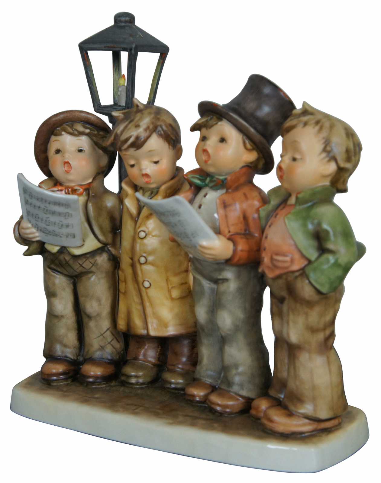 Goebel West Germany Century Collection ceramic figurine #471 – Harmony in Four Parts aka Sangerquartett aka Le Quatuor – portraying four young boys caroling under a candle lit street lmap.
