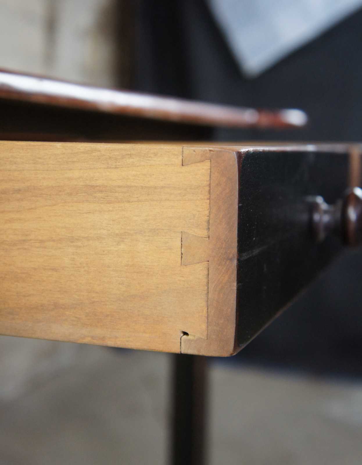 Late 20th century porringer top table by David T Smith. Features a parcel ebonized base in traditional fasion with fluted legs. Includes two dovetailed drawers marked on the underside. Circa 1986.