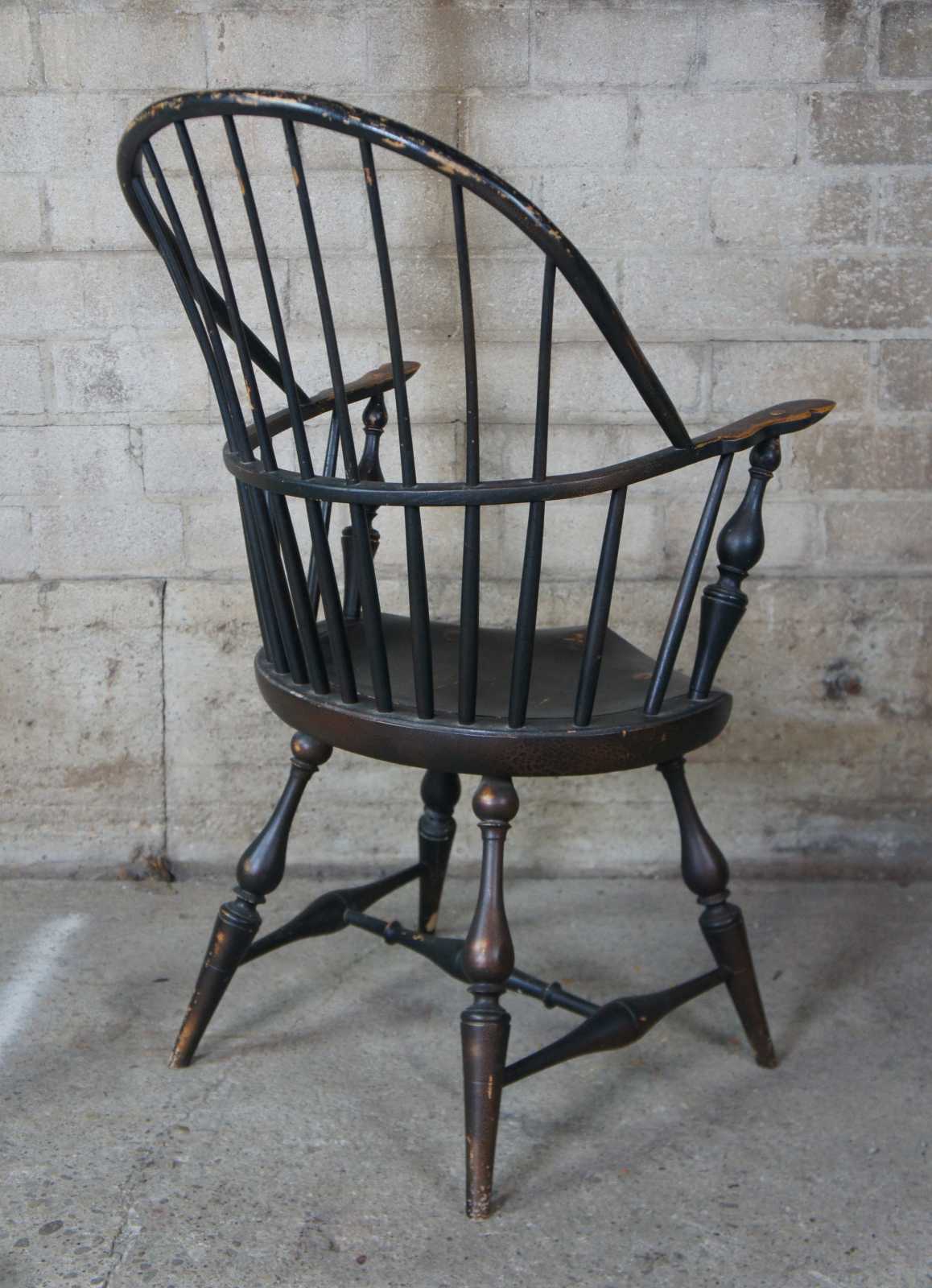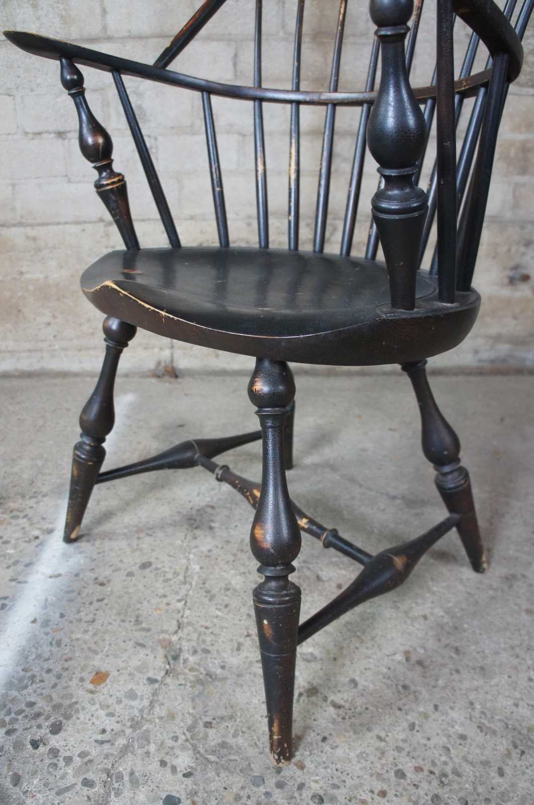 4 River Bend Chair Co. Windsor Bow Back Colonial Dining Arm Chairs Black Crackle