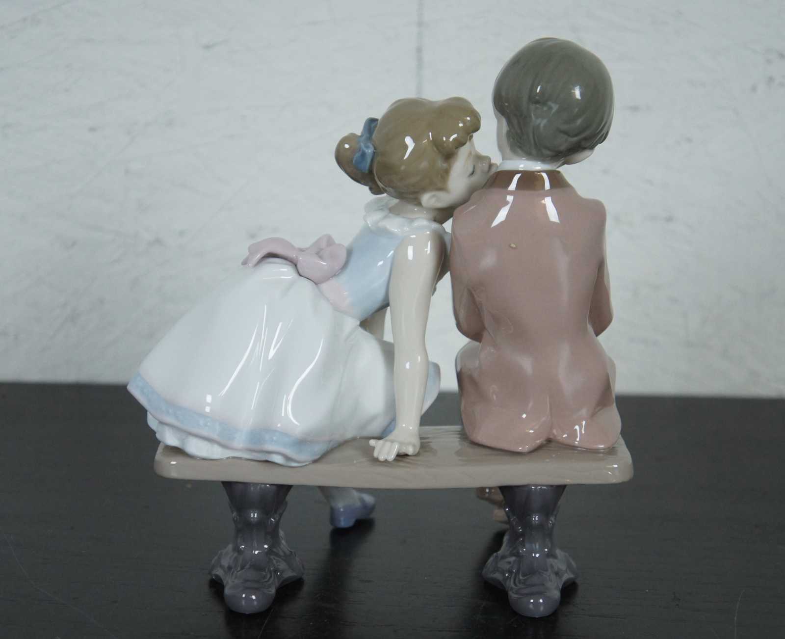 Lladro Spain 1995 10th anniversary porcelain figurine #7635 – Ten and Growing, featuring a boy and girl on a bench.