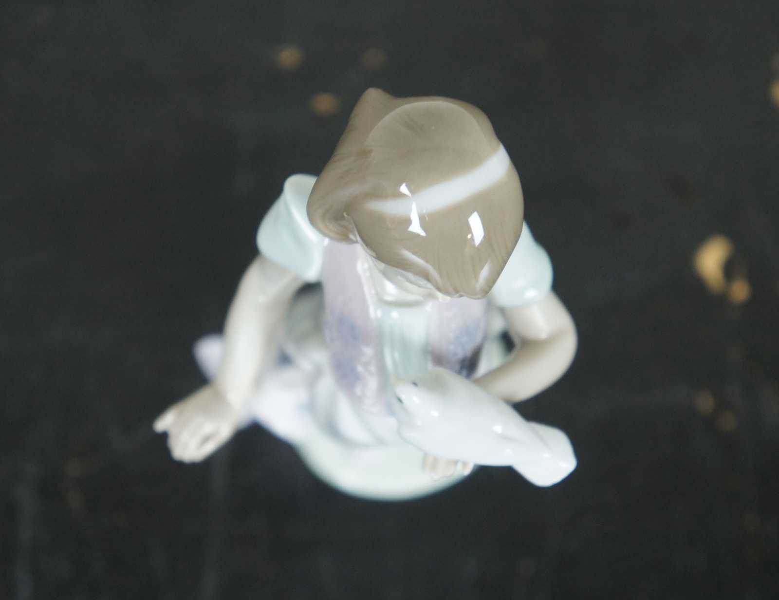 Lladro Spain 1991 Collector’s Society porcelain figurine #7611 – Summer Stroll, portraying a young woman leaning on a parasol, holding a dove, with a cat at her feet.