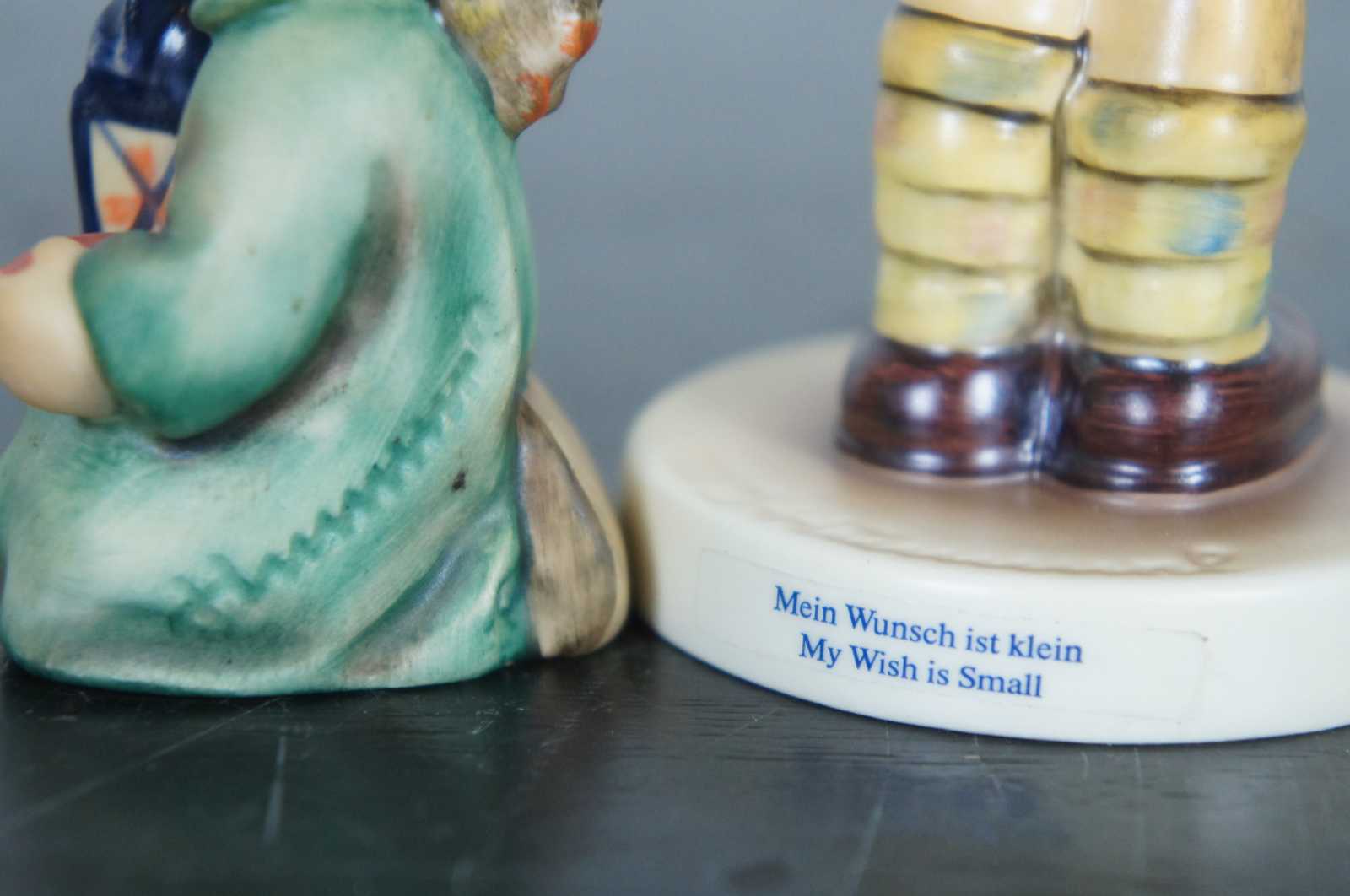 33 Goebel West Germany Hummel ceramic figurines. Lot includes: 50th Anniversary Jubilee #416 Signed, Valentine Joy #399 Exclusive Special Edition No. 4 Goebel Collectors Club 1979, Which Hand #258, My Wish is Small #463/0 Exclusive Edition 1992/93 MI Hummel Club, What Now #422 Exclusive Edition No. 7 1981, 2 Birthday Candle #440 Exclusive Special Edition No. 10 Goebel Collectors Club 1983, The Surprise #431 Exclusive Special Edition No. 12 1981, Sweet Music #186, Happy Traveler #79 1991 Final Issue, Final Issue 1990 Signs of Spring #203/1, Happy Birthday #176/0, Going to Grandma’s #52/0, Village Boy #51 2/0, Smiling Through #408/0 Exclusive Special Edition No. 9 Goebel Collectors Club 1983, On Holiday #350, MI Hummel Museum New Braunfels, Texas Plaque #756, 2 Millenium 2000 MI Hummel Plaque #900, Grandpa’s Boy #562 First Issue 1991, Private Conversation #615 Exclusive Edition 1999/2000 MI Hummel Club, One Plus One #556 First Issue 1993 Special Event, Apple Tree Girl #741 3/0, 2 Coffee Break #409 Exclusive Special Edition No. 8 1976, The Poet #3973/0 Exclusive Edition 1998/99 MI Hummel Club, ABC Stunde aka Honor Student #2087/8 MI Hummel Club Membership Year 2000/2001, Forever Yours #793 MI Hummel Club First Issue 1996/97, Chick Girl #57/0, Knit One, Purl One #432 Signed, Goodnight Angel #357, Joyous News #238A (angel with mandolin), Joyous News (angel with accordion) #238B.